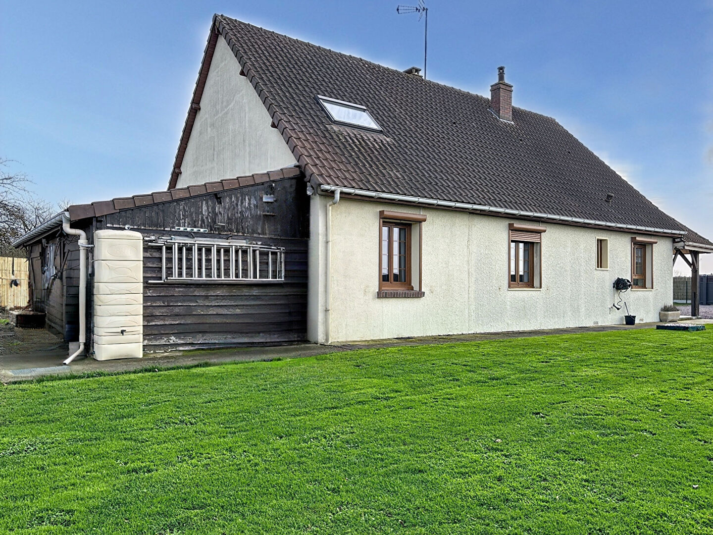 Un atelier en bois et un grand garage avec grenier viennent compléter le bien.