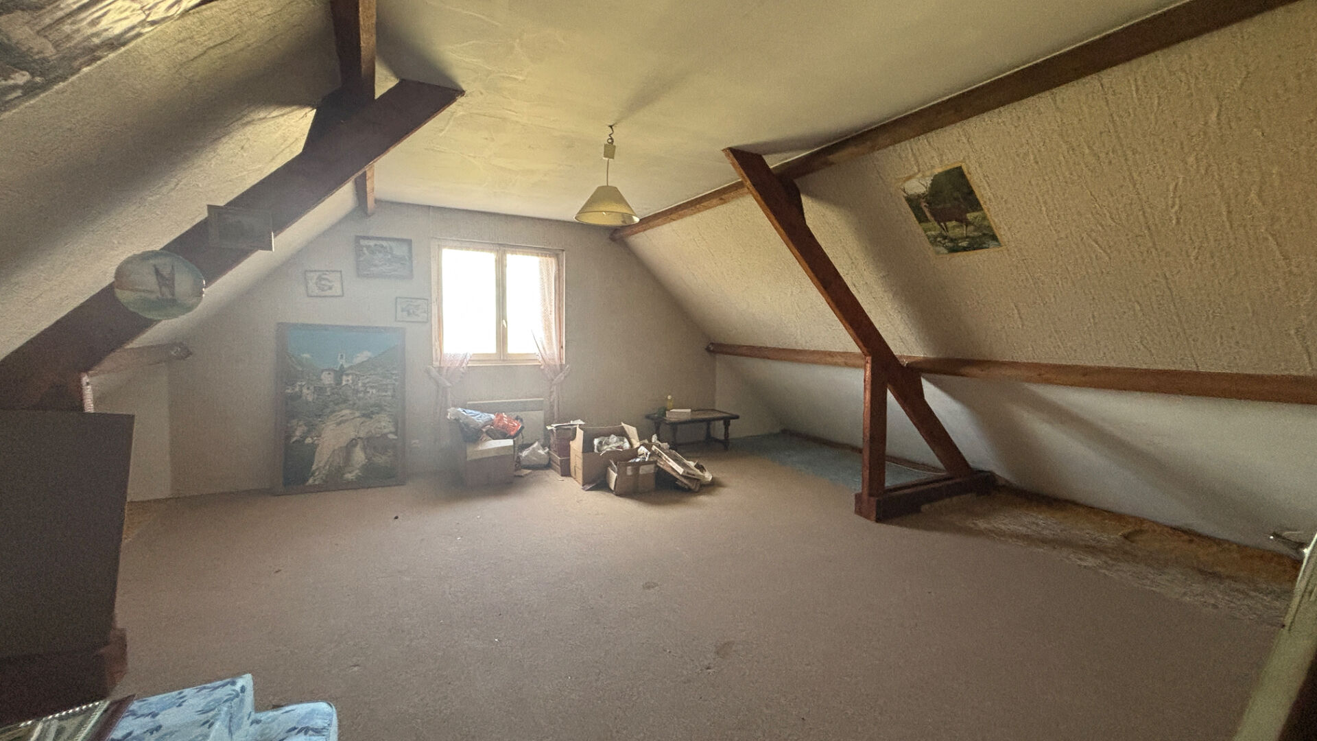 À l'étage, un palier mène à une grande pièce, offrant de nombreuses possibilités d'aménagement