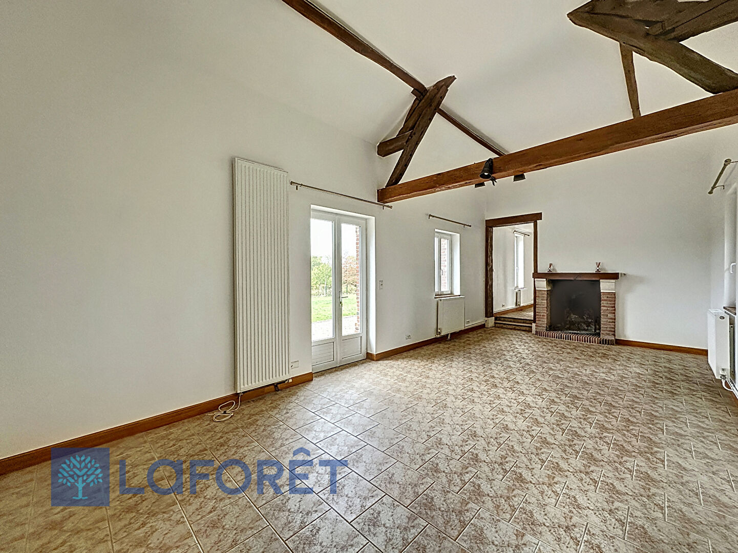 Salon et grand séjour convivial avec cheminée, idéal pour des moments de partage