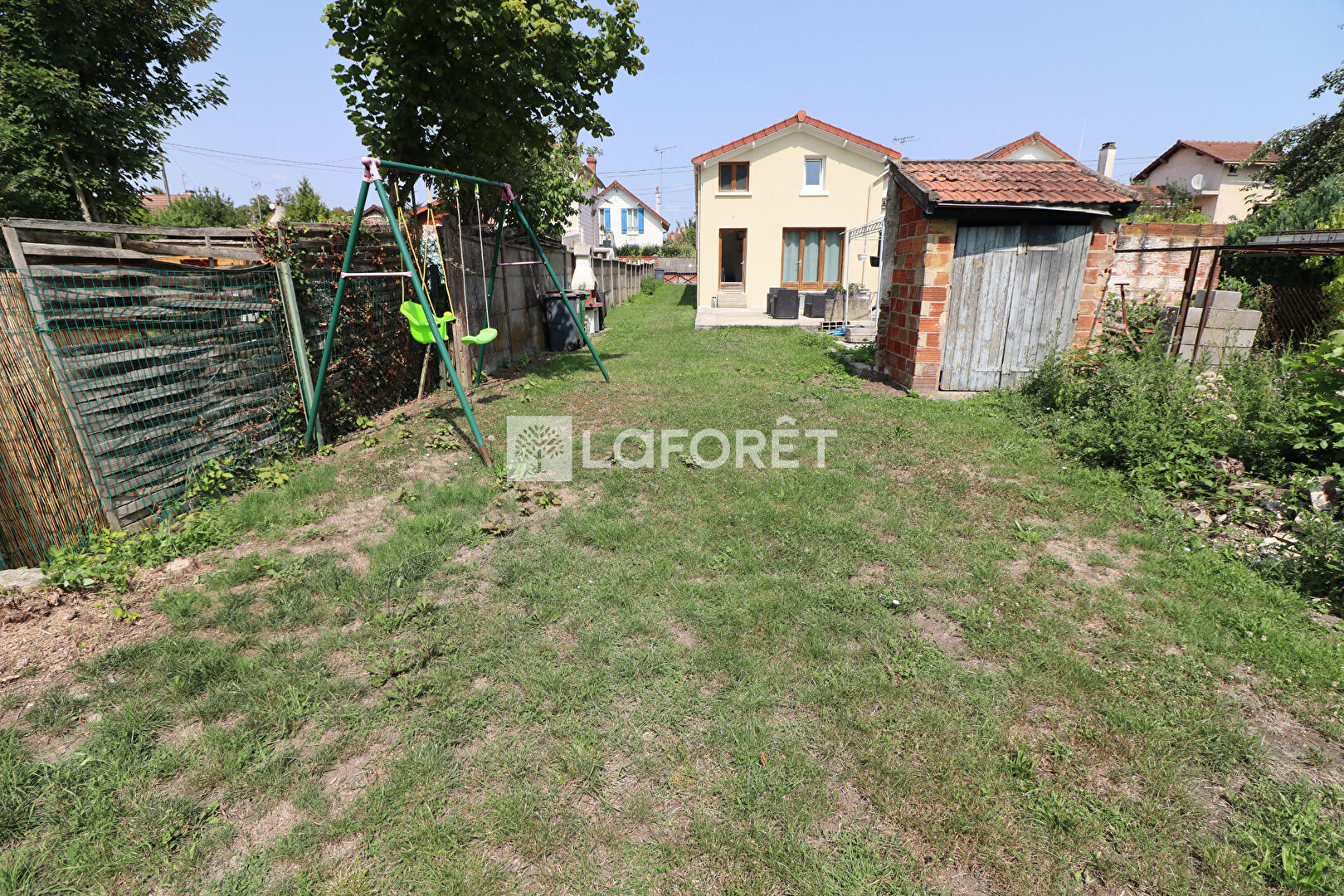 PROCHE RER A. Ensemble immobilier comprenant 2 maisons édifiées sur 823 m² de terrain. 1er maison comprenant entrée, cuisine, séjour, WC. A l'étage: palier, 2 chambres, salle de bains avec WC.