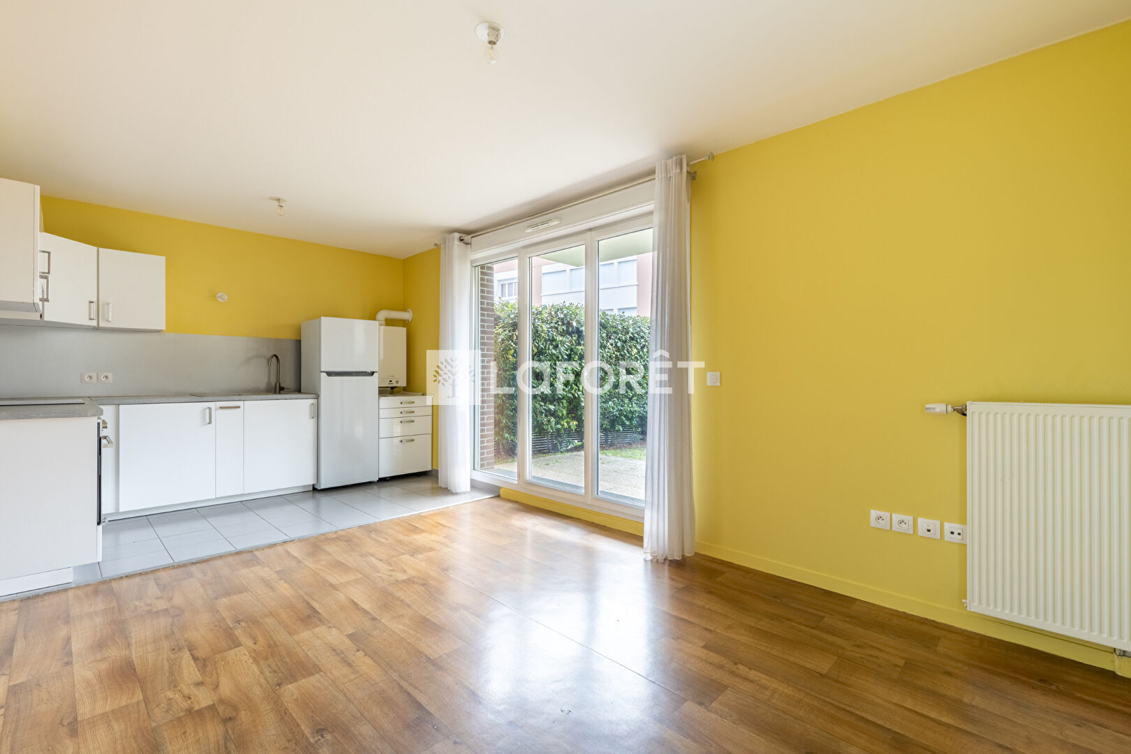 Il se compose d'une pièce de vie lumineuse avec séjour ouvert sur la cuisine, offrant un accès direct à un agréable jardin privatif.