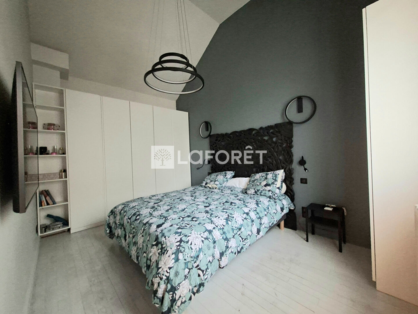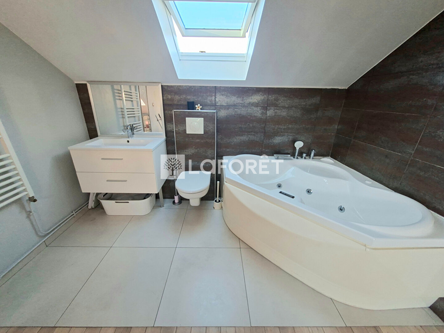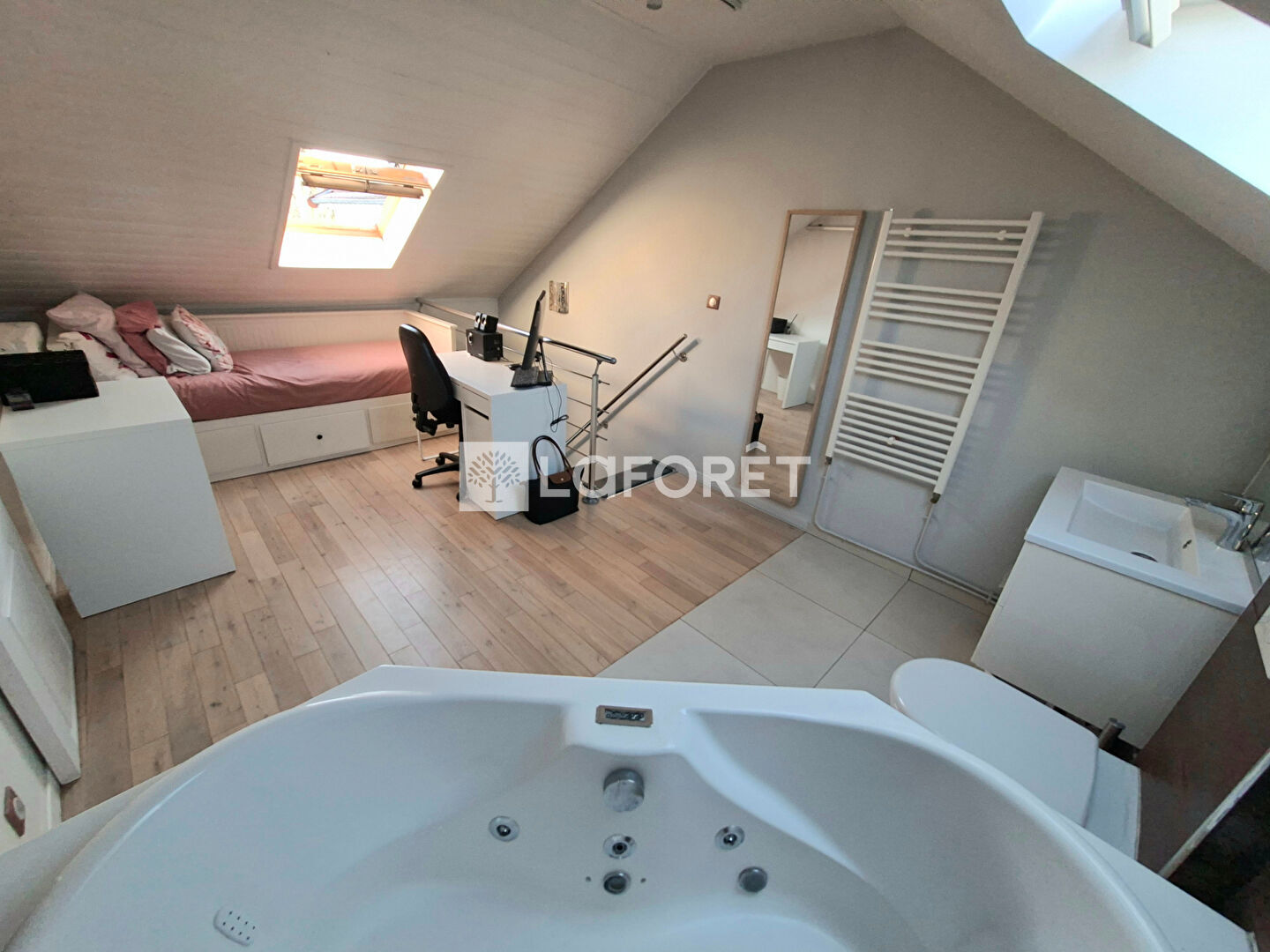 À l'étage, elle vous offre une chambre parentale avec sa balnéo et une pièce mansardée actuellement utilisée en bureau et dressing.