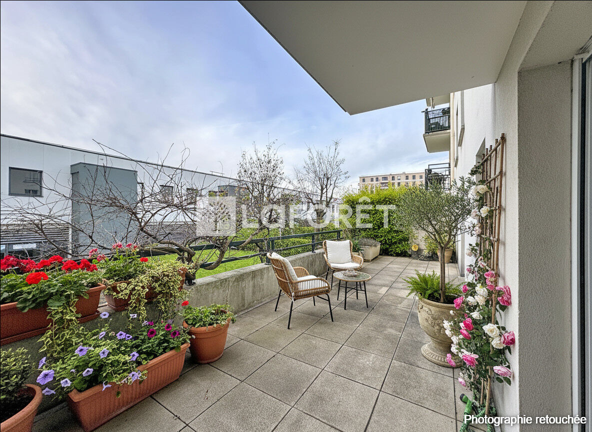 Il se compose d'un séjour lumineux avec cuisine ouverte aménagée, offrant un accès direct à une magnifique terrasse de 30 m² exposée Ouest, véritable prolongement de l'espace de vie.