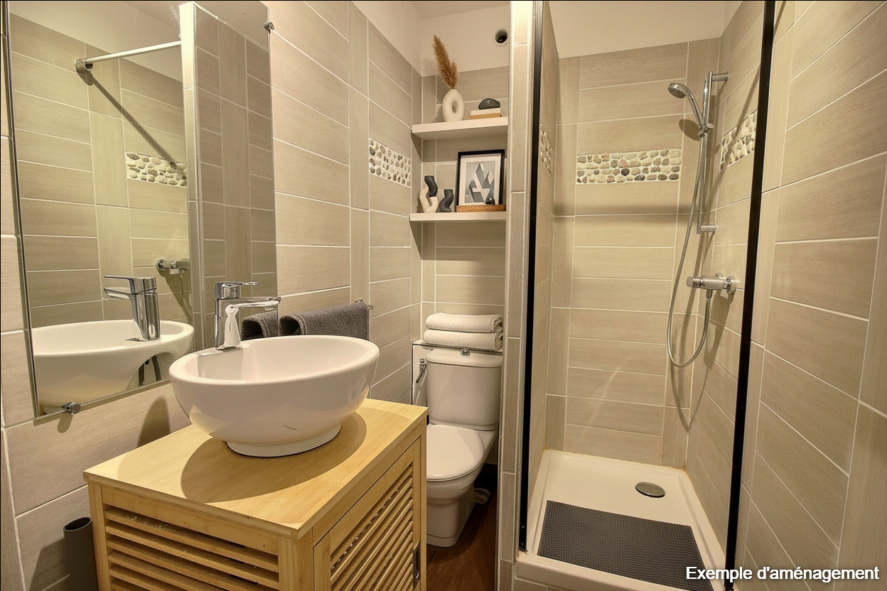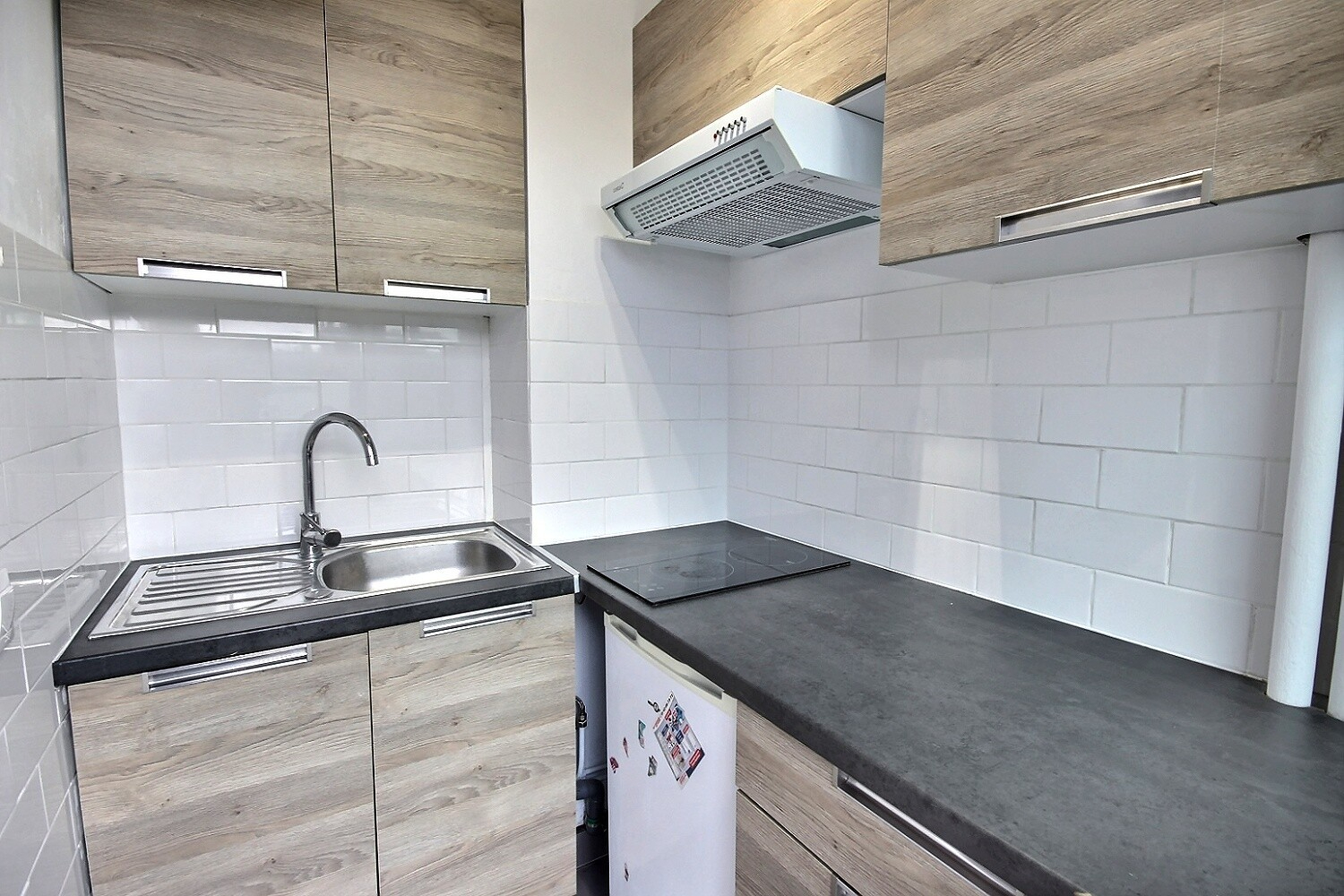 Composé d'une entrée avec placard, une salle d'eau avec WC, une cuisine, une pièce de vie et un balcon .