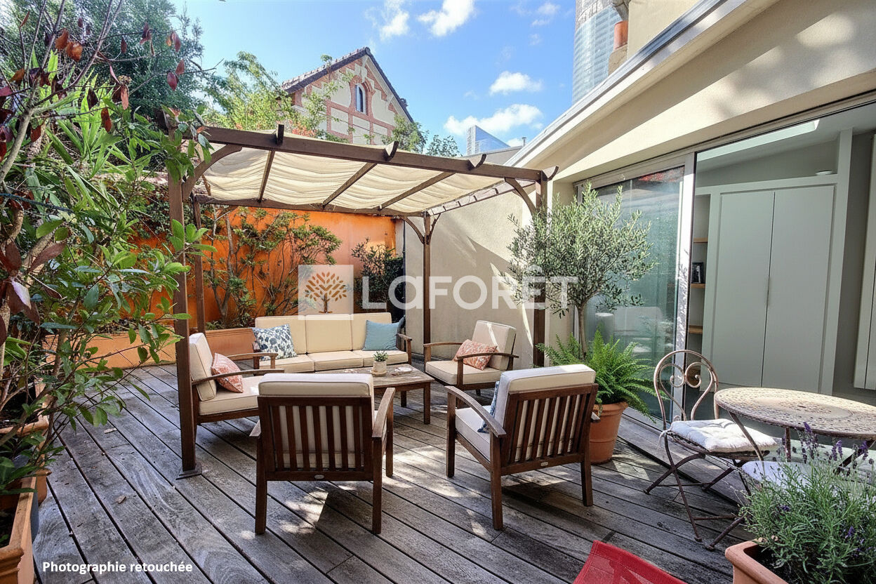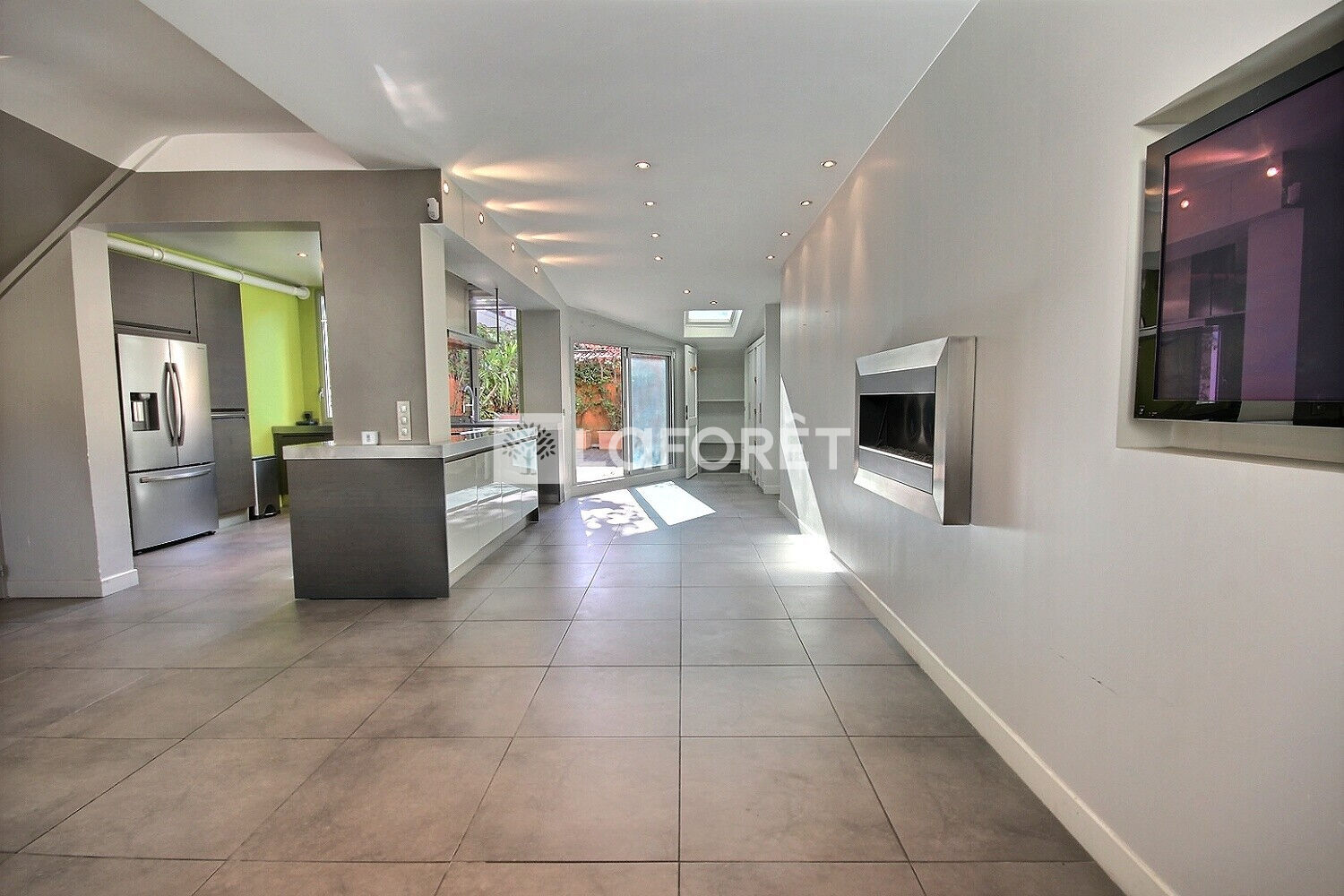 - niveau rue : grand espace de vie (56m²) avec cuisine US donnant sur l'espace extérieur
