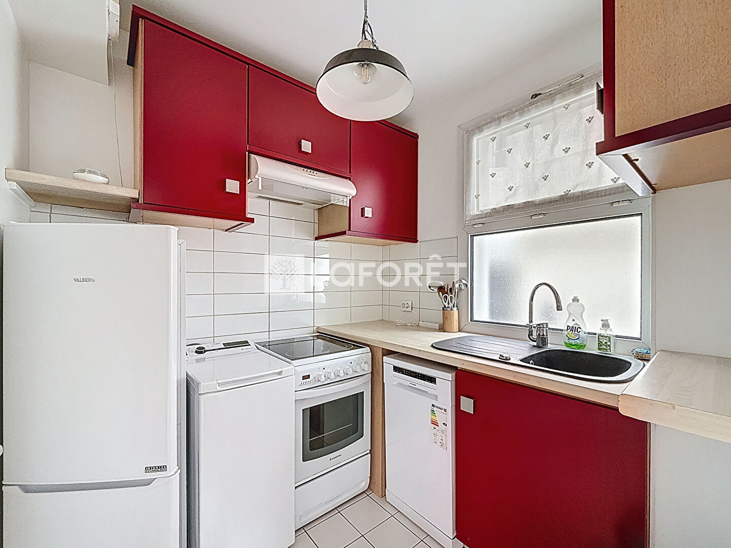 Cet appartement comprend : une entrée, un séjour spacieux, une cuisine aménagée et totalement équipée, une chambre avec placard, une salle d'eau avec wc.