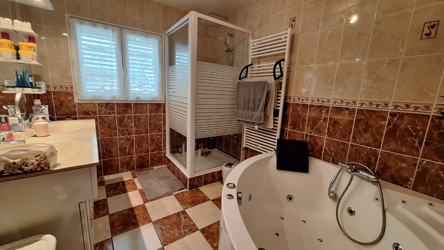 Au niveau des prestations : rénovation avec des matériaux de qualité, chaudière gaz à condensation de 2022, menuiseries aluminium et PVC double vitrage...
