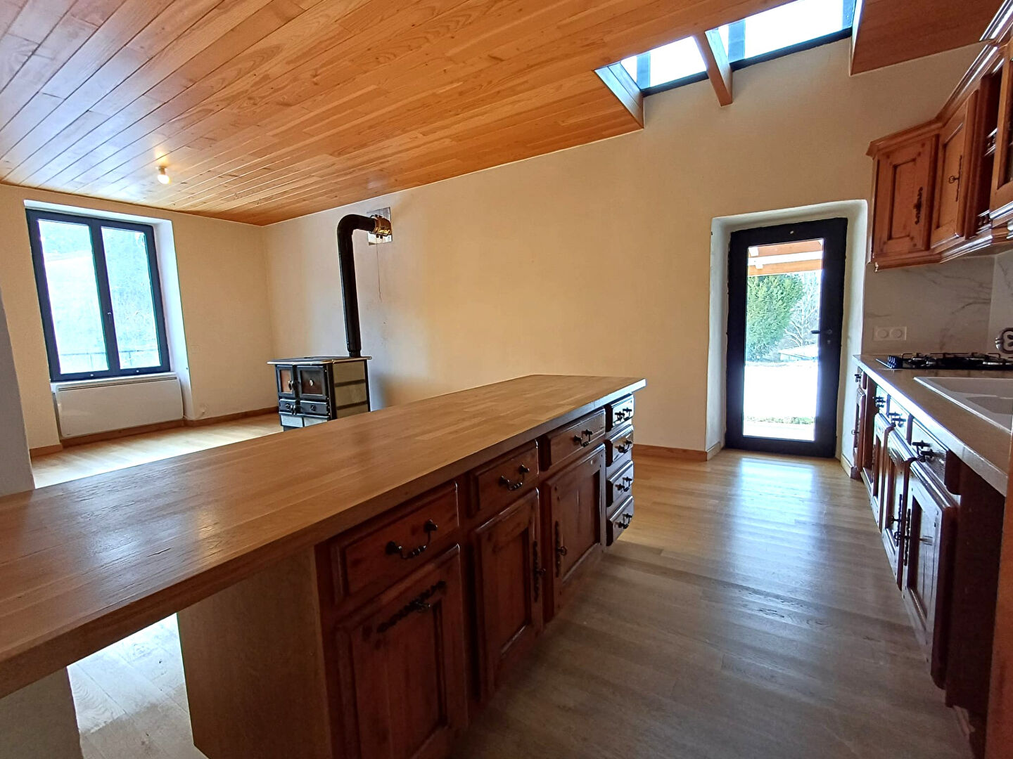 - d'un côté, à une salle à manger avec cuisine ouverte, conviviale et lumineuse, avec accès direct au jardin arrière,