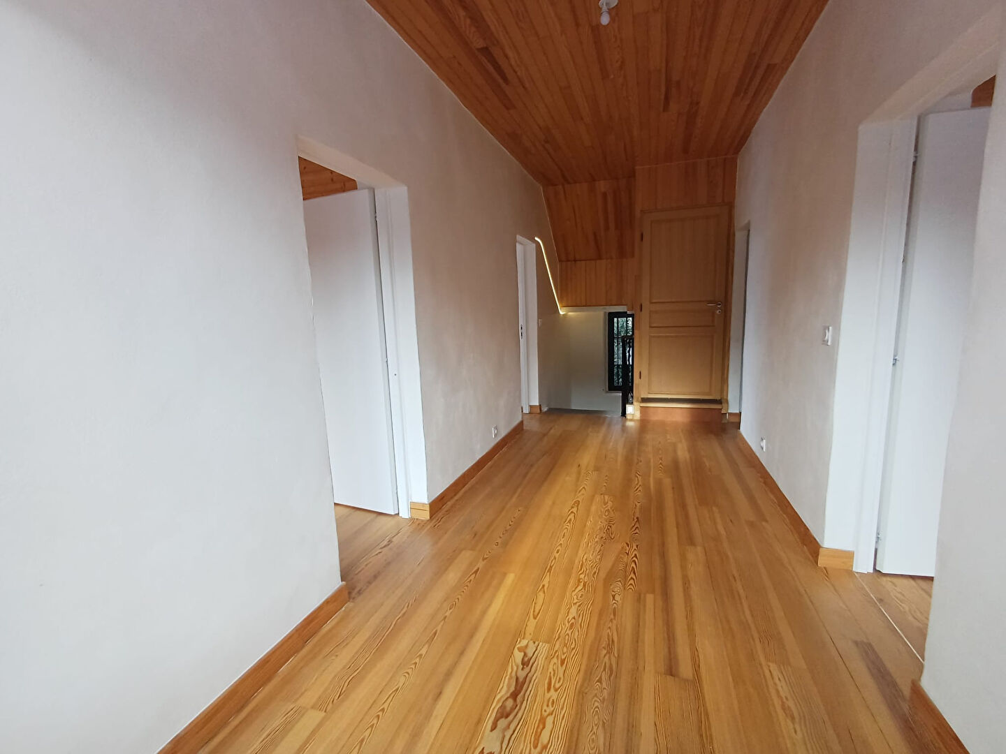 À l'étage, un superbe escalier en pierre de Volvic conduit à l'espace nuit comprenant trois vastes chambres, dont une avec balcon, un dressing, une salle de bains et un WC indépendant.