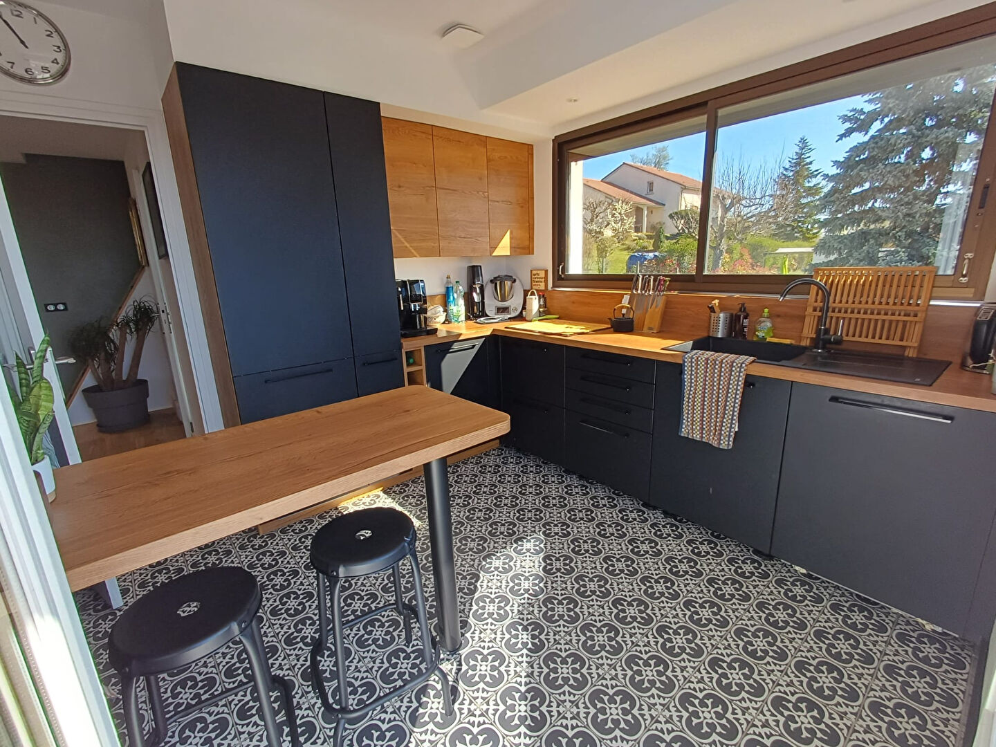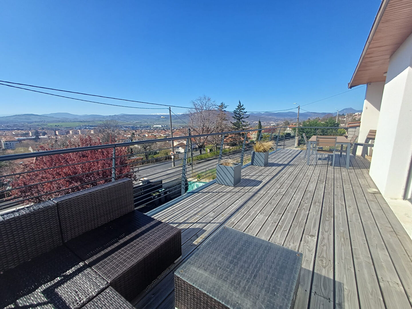 À l'étage, le coeur de vie s'organise harmonieusement avec, pour commencer, une cuisine et une salle à manger baignées de lumière, ouvertes sur une magnifique terrasse exposée plein sud, idéale pour profiter pleinement des beaux jours et d'un panorama à couper le souffle.