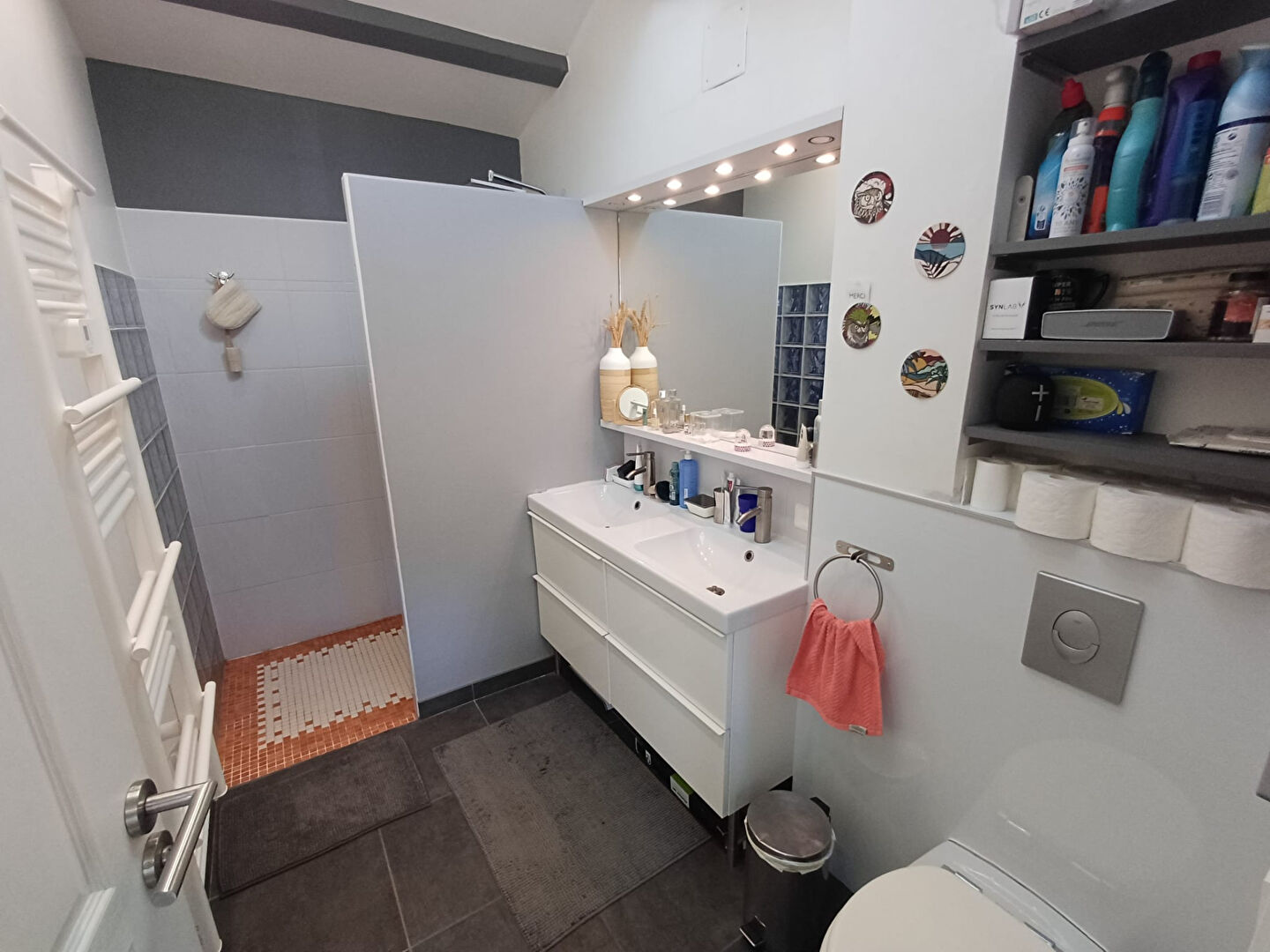- une vaste pièce de vie baignée de lumière, réunissant salon et salle à manger, avec un accès direct à la terrasse exposée plein OUEST, idéal pour les couchers de soleil,