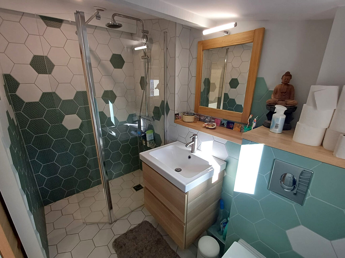 À l'étage sous combles, un espace enfants plein de charme propose : une chambre, un bureau avec espace couchage totalement mansardé (idéal pour un adolescent) et une seconde salle d'eau avec WC.