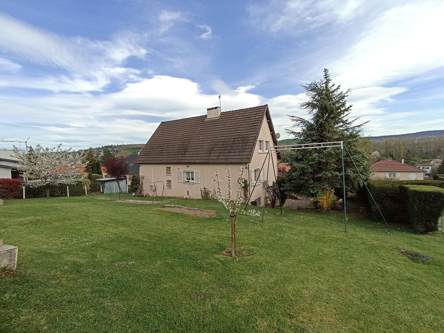Cette maison familiale de bonne facture de 1974, d'environ 171 m² habitables élevée sur sous-sol et 1783 m² de terrain, clos, arboré et piscinable saura vous séduire par ses beaux volumes et sa capacité d'accueil. Le terrain est divisible.