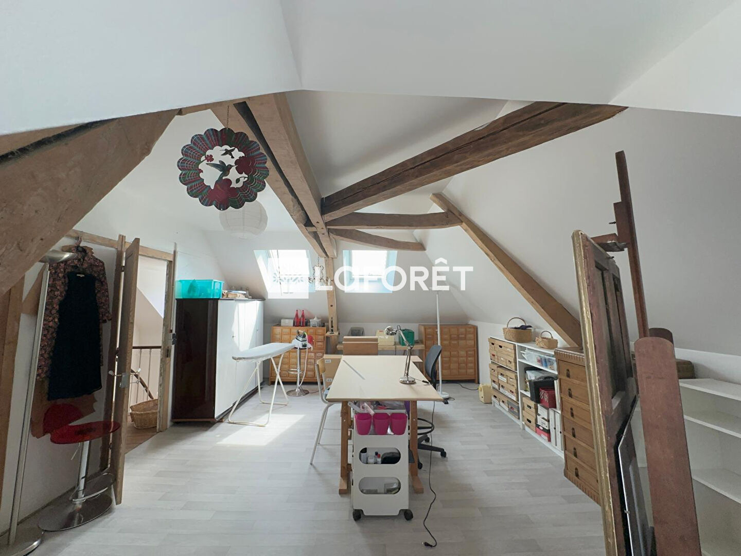 Au deuxième étage, vous trouverez deux chambres supplémentaires ainsi qu'un espace atelier ou bureau de 35 m², facilement aménageable en grande suite parentale, salle de jeux ou espace professionnel selon vos besoins.
