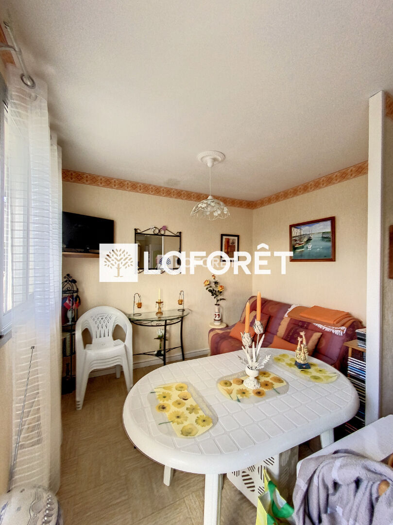 Dès l'entrée, vous découvrez un séjour lumineux avec salon, modulable afin de créer un espace nuit supplémentaire. La cuisine et un placard de rangements. Un dégagement dessert une grande chambre, des WC séparés ainsi qu'une salle de bains. Le terrain est entièrement dallé et sans vis-à-vis