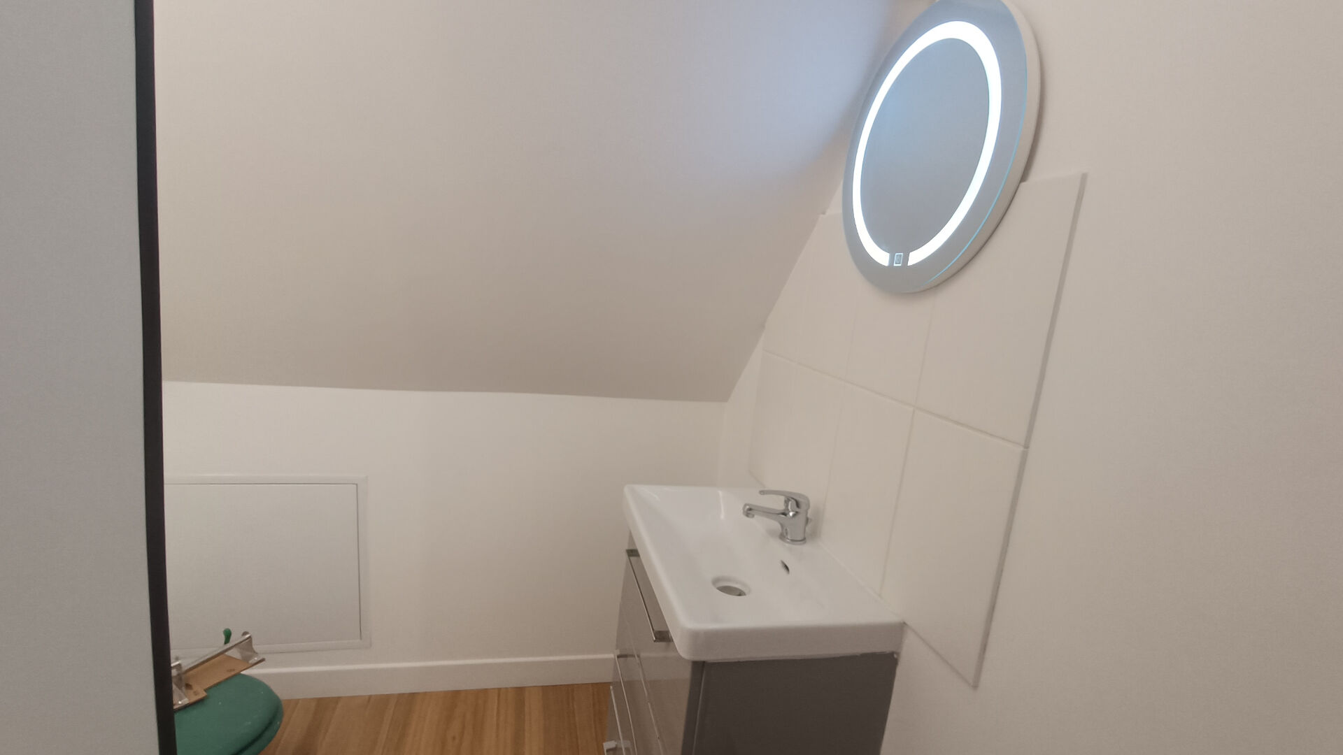Au 1er étage un appartement T2 en duplex composé d'un séjour avec cuisine ouverte, une chambre avec un grand placard, une salle d'eau avec w-c.