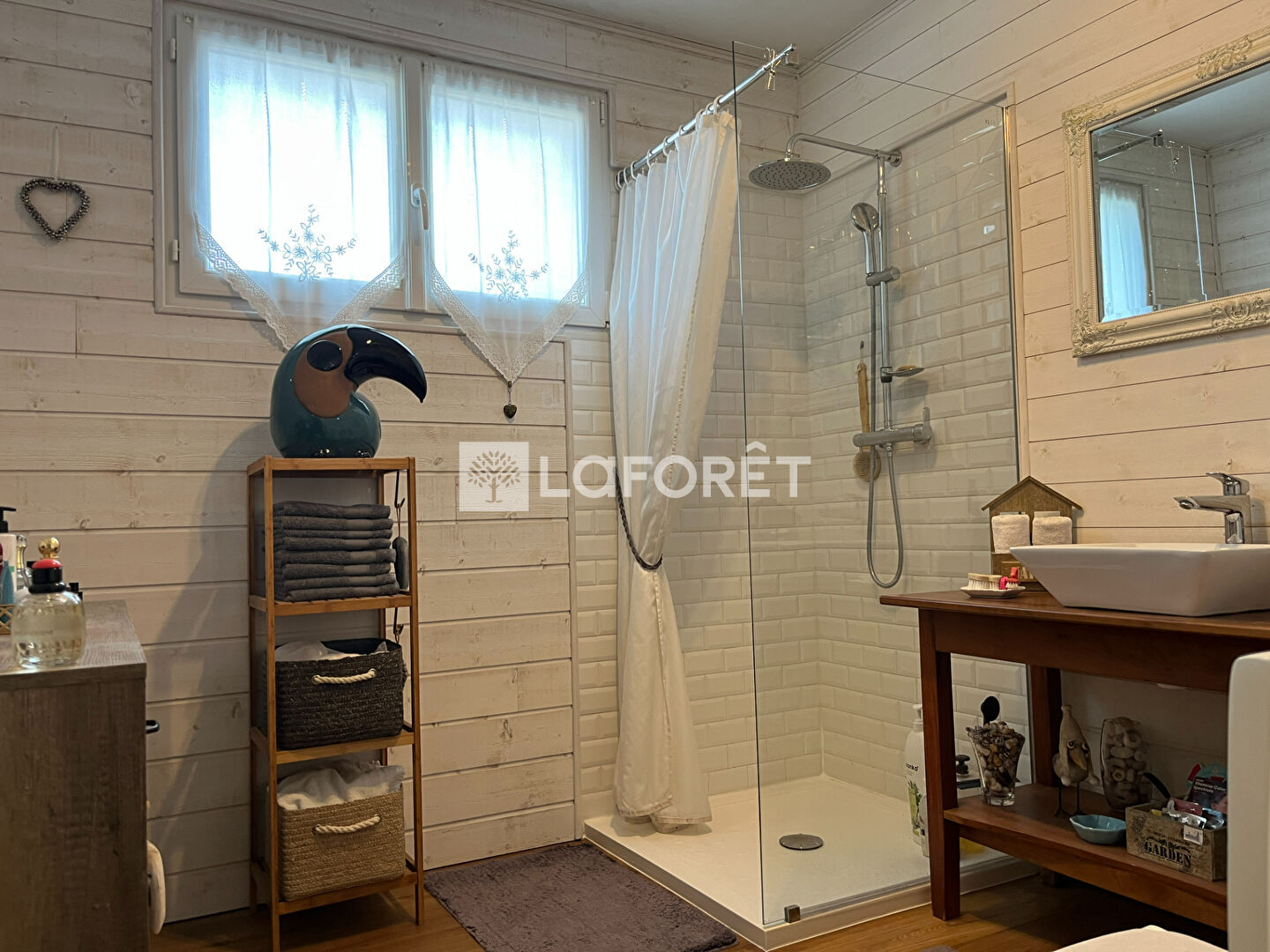 Au 1 er étage, un grand couloir dessert cuisine aménagée, salon de 28 m² très lumineux donnant sur un balcon, 2 chambres de 13 m² chacune, salle d'eau et wc séparé.