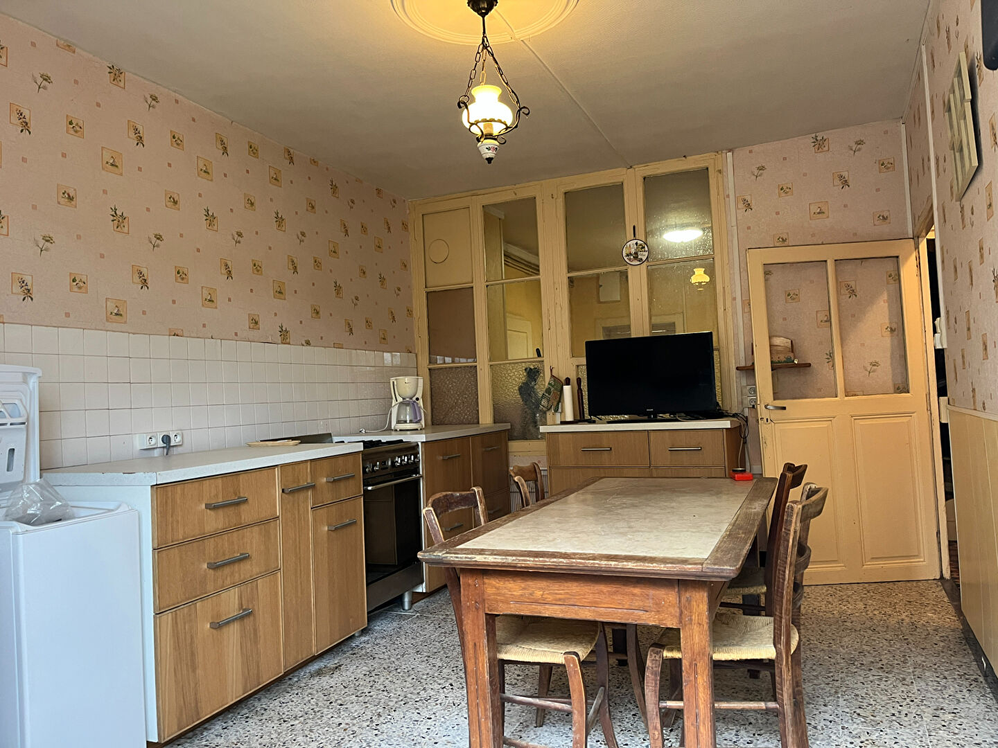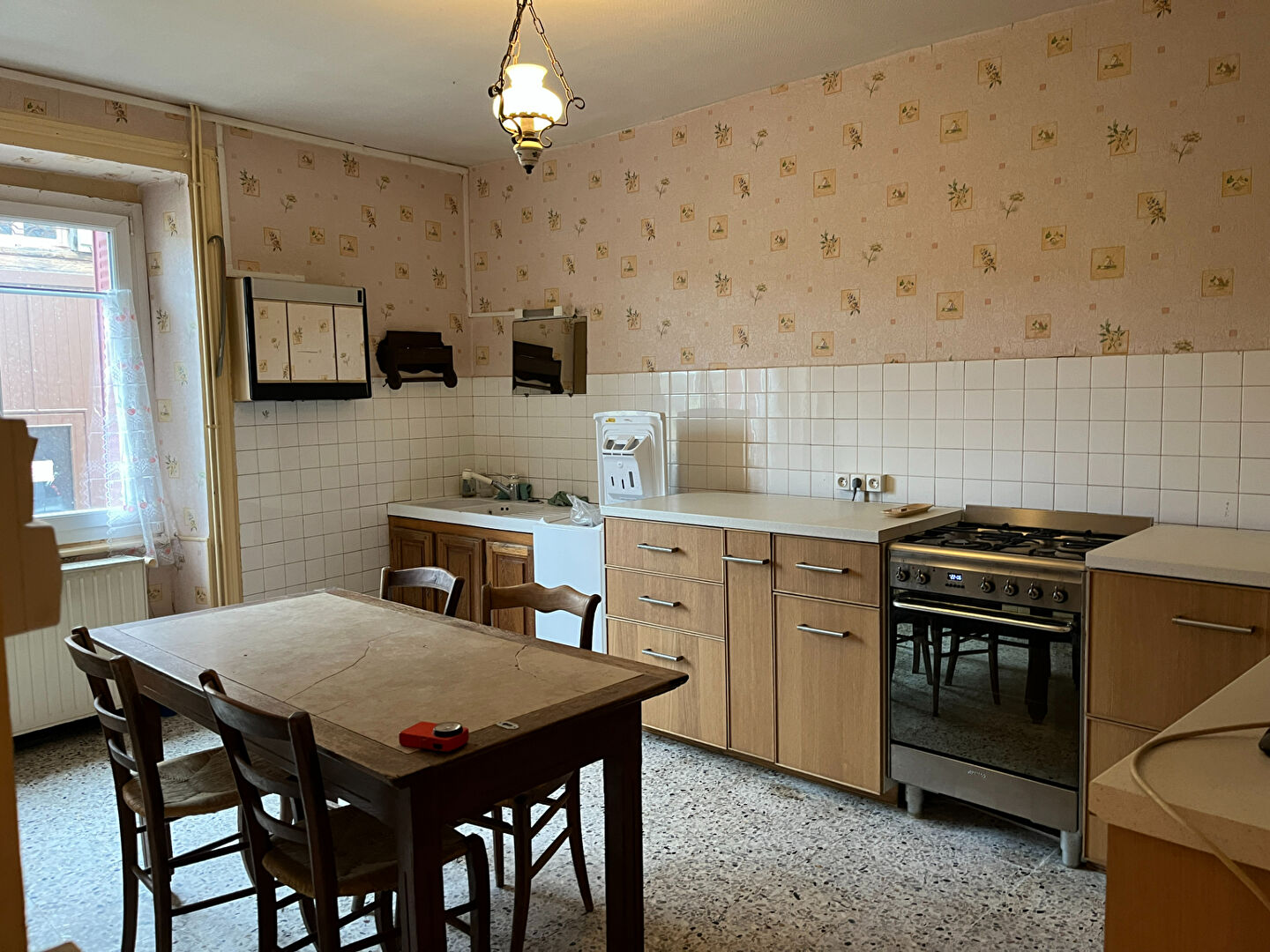 Cette vaste maison de 158m² env comprend au rez de chaussée une entrée desservant une cuisine, séjour (28m2env), un entre-deux. Au 1er étage: 3 chambres (29, 17 et 15m²) salle d'eau et wc. Vaste grenier au dessus de 75 et 30m² env. cellier et garage.