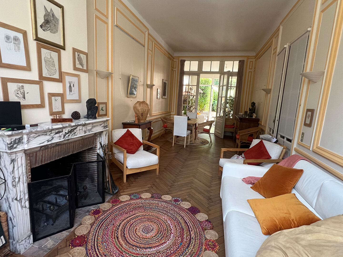 Dès l'entrée, les amoureux de l'architecture seront séduits par les volumes généreux, les cheminées d'époque, le parquet en chevron d'origine, les moulures élégantes et la luminosité traversante qui baigne les pièces de réception.