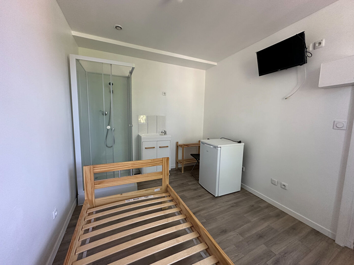 Chambres équipées (lit, bureau, TV, réfrigérateur, douche, portant à vêtements)