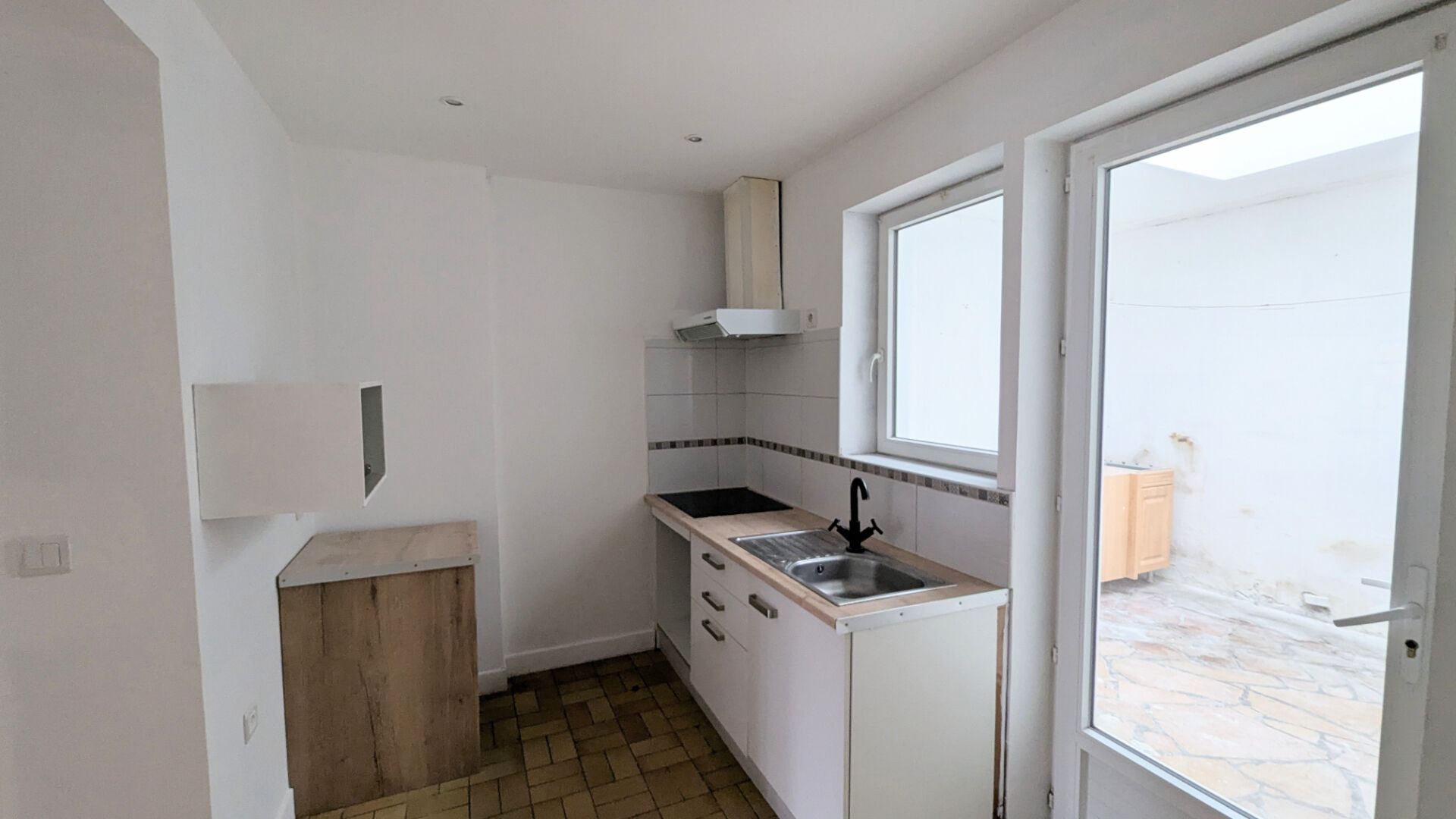 Passé l'entrée, vous découvrirez une pièce de vie de 24 m², donnant accès à une cuisine aménagée.