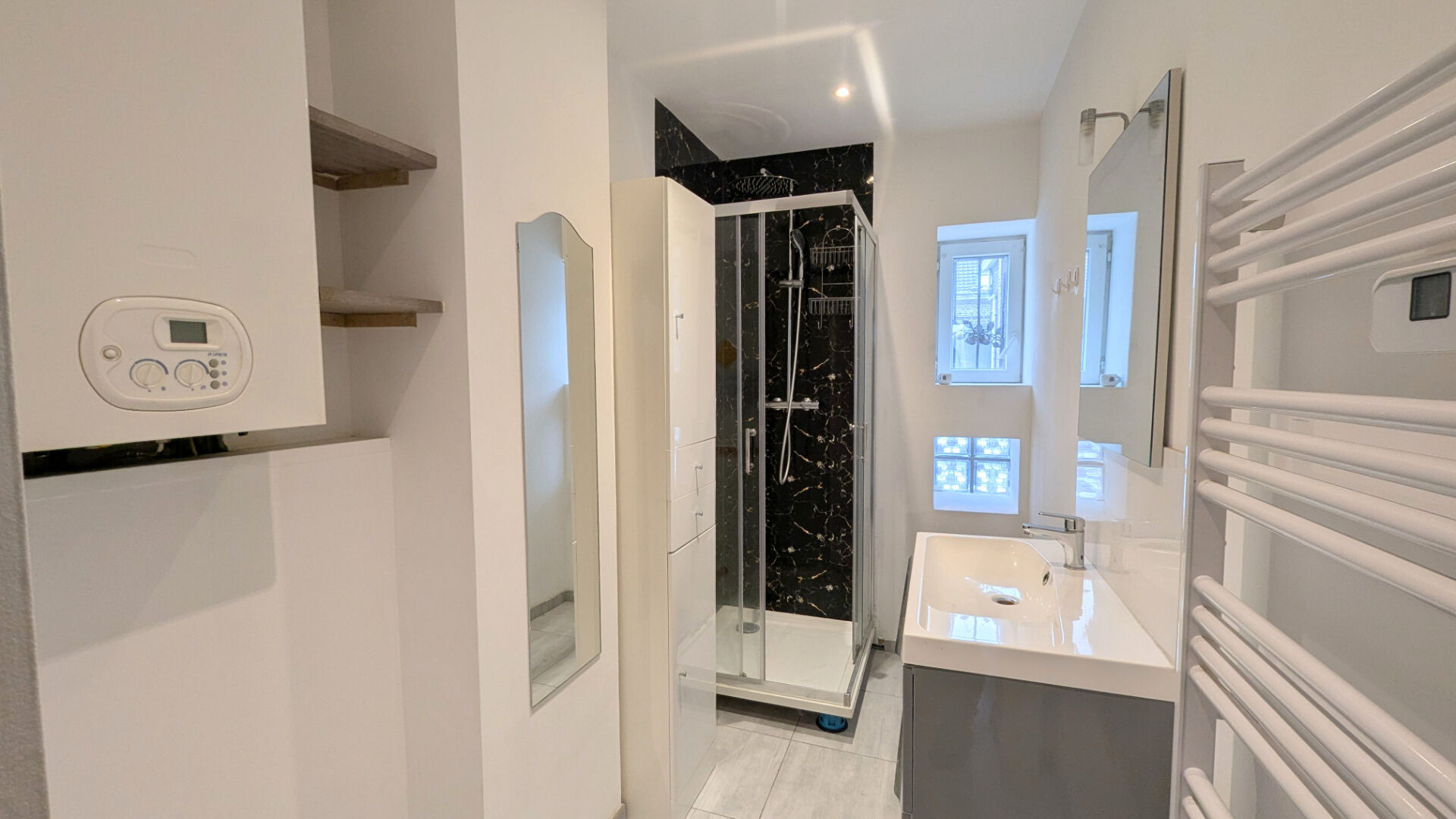 Le rez-de-chaussée comprend également un WC et une cour couverte, idéale pour du rangement ou un espace buanderie.