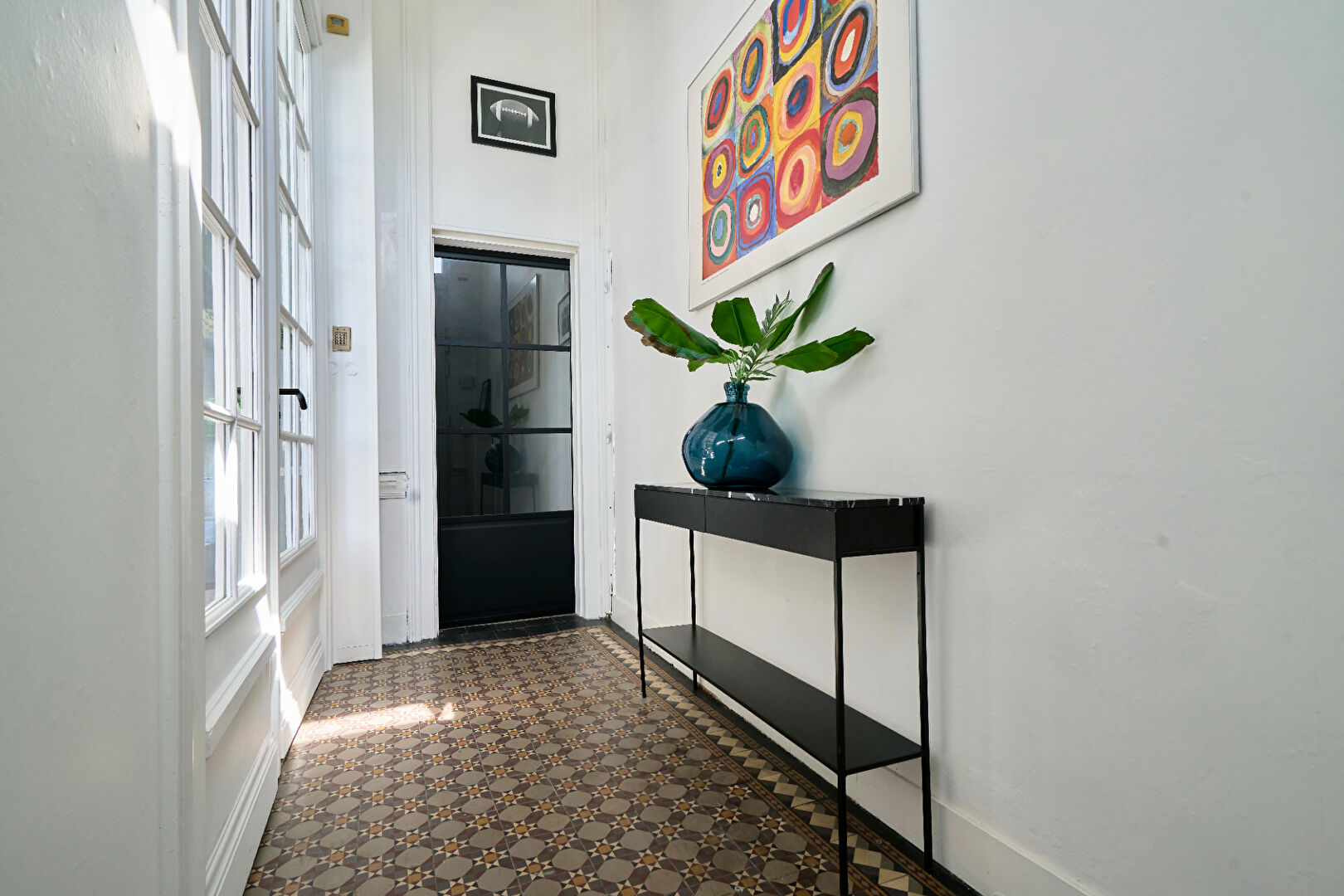 En entrant, vous serez accueilli par un hall d'entrée lumineux avec son carrelage ancien préservé, donnant sur un vaste espace de vie traversant.