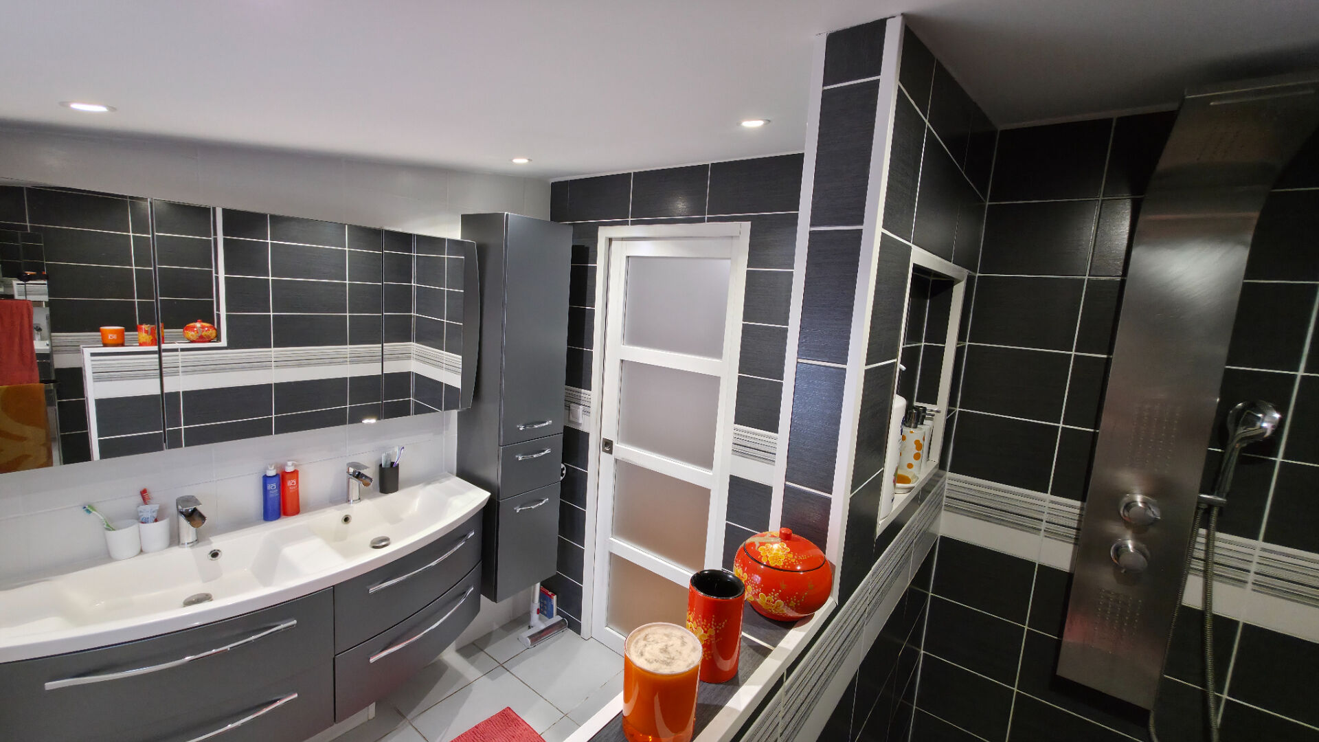 À l'étage, un palier dessert 3 chambres confortables et une salle d'eau pratique, avec sa double vasque et son W.C.