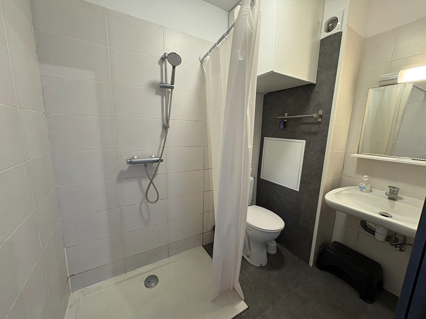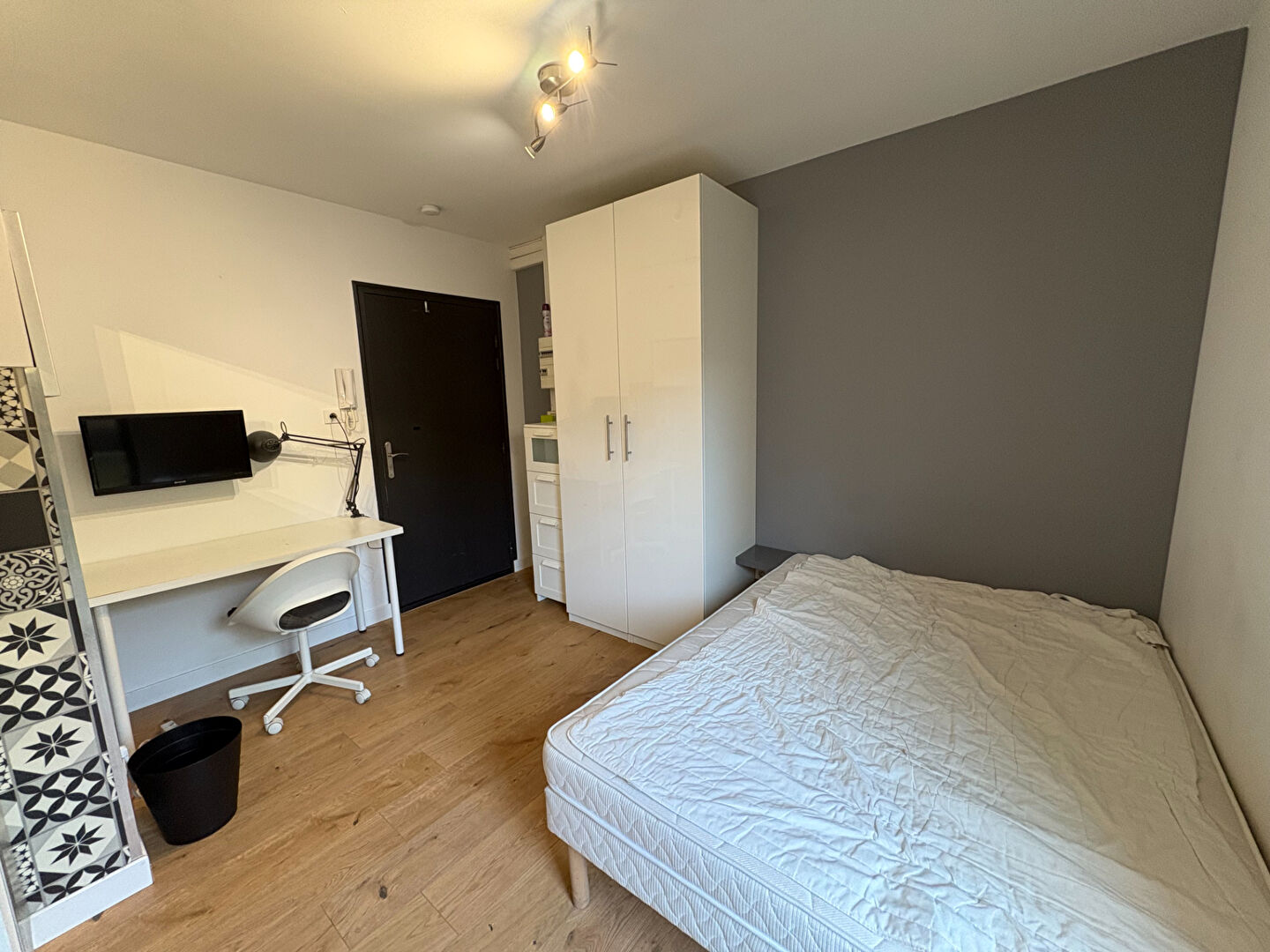 d'un espace de vie optimisé et meublé (lit deux places, bureau, rangements),