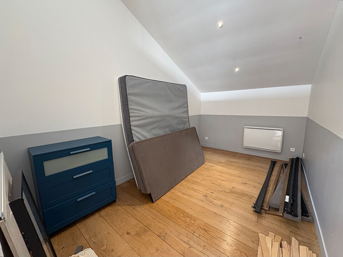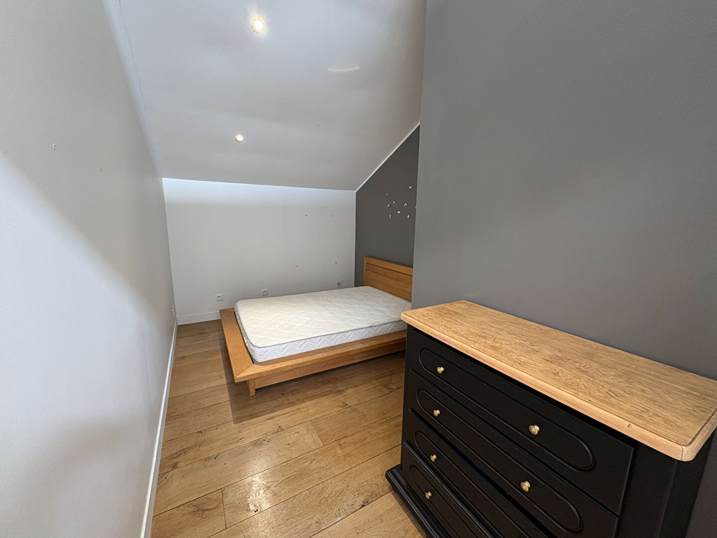 L'espace nuit se trouve au 1er étage avec 3 chambres, dont une grande (18,65m2) avec dressing, une salle d'eau et un wc indépendant.