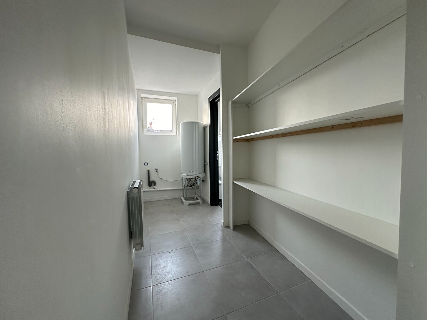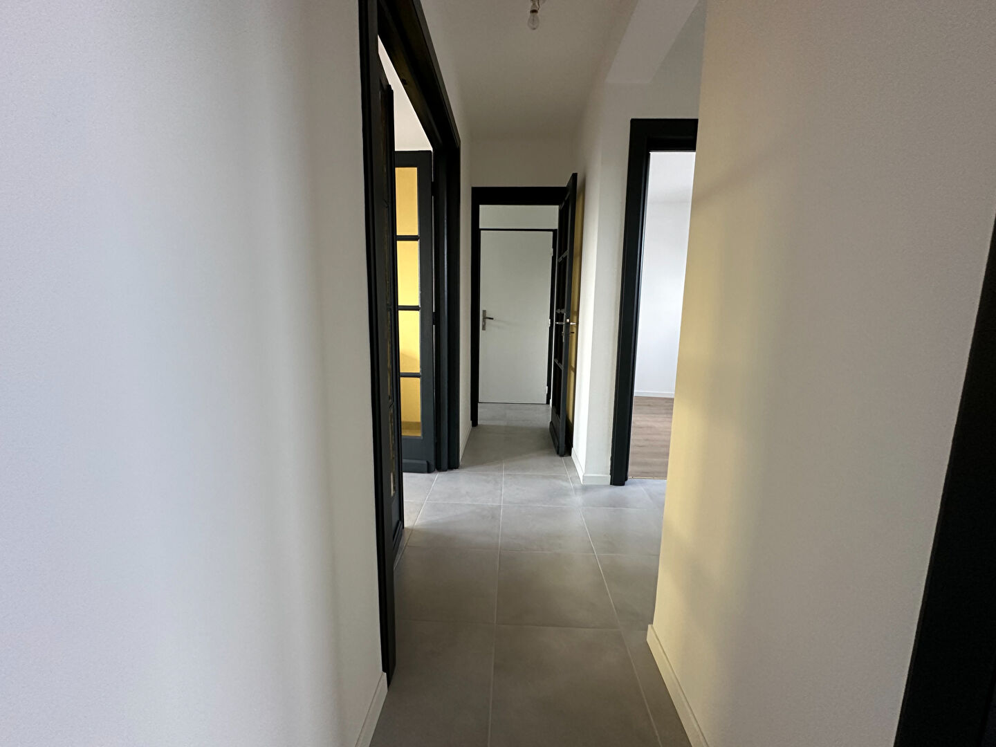 Superficie : 54m², Type : T2, État : Entièrement refait à neuf, Revêtement de sol : Parquet élégant et chaleureux, Luminosité : Appartement très lumineux, Agencement : couloir spacieux avec espace de rangement et buanderie, cuisine équipée ouverte sur un salon-séjour de 21m², salle de bain avec une décoration soignée, 1 chambre confortable,1 bureau de 7.65m² pouvant servir de petite chambre