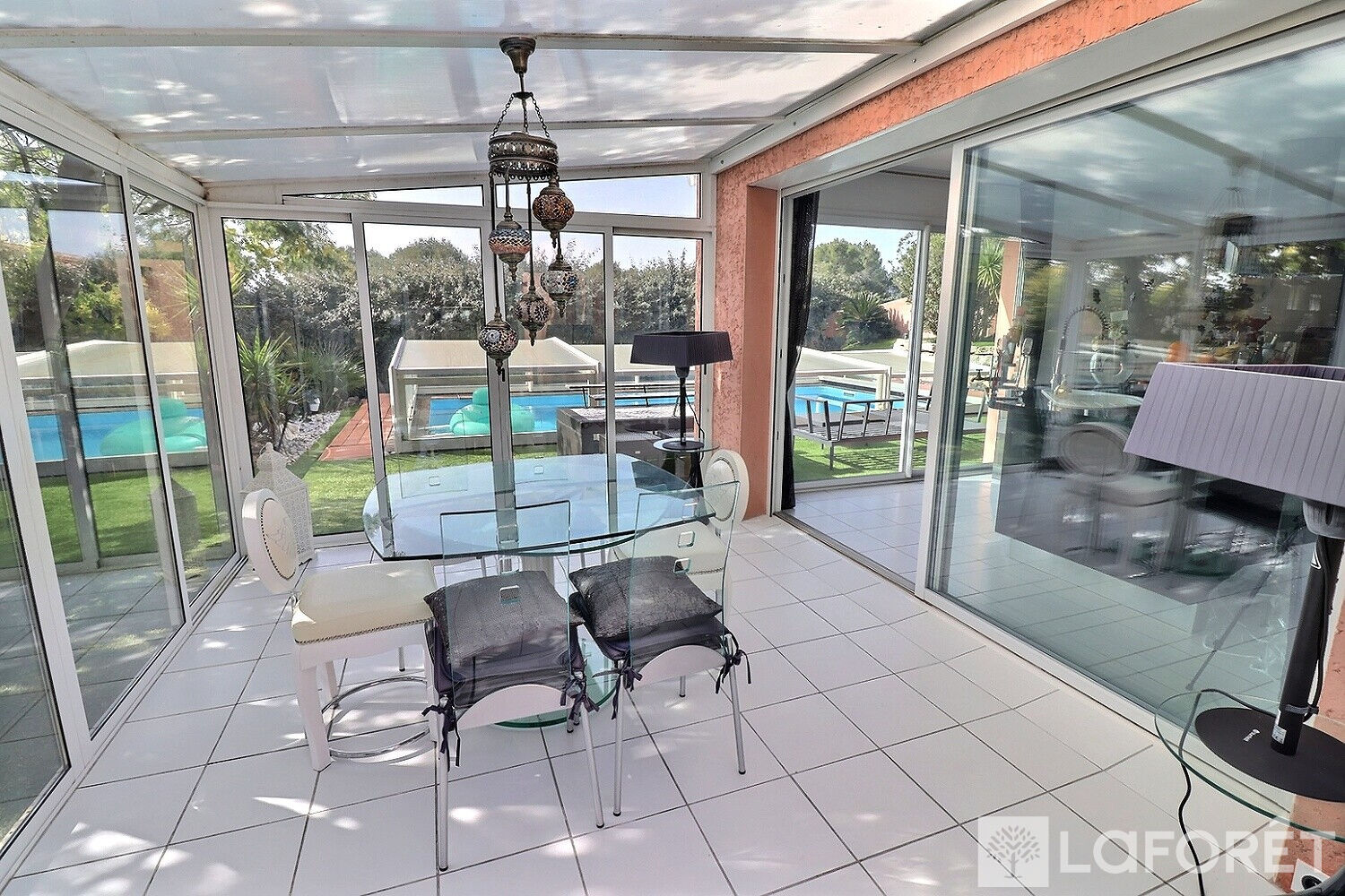 Au calme et sans vis à vis, vous accédez directement dans le séjour avec cheminée éthanol, une magnifique cuisine équipée, le tout donnant sur la véranda qui fait office de salle à manger.