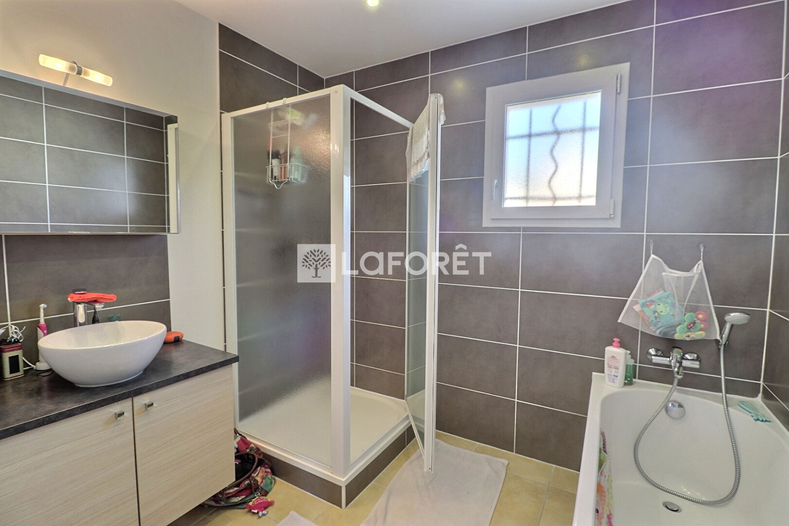 Implantée sur un terrain de 401 m², cette maison lumineuse se compose d'une entrée principale, salon séjour climatisé avec accès direct à la terrasse ombragée de 24 m², cuisine américaine entièrement aménagée et équipée, cellier attenant et espace de rangement sous escalier, à l'étage nous retrouvons trois chambres climatisées avec placards intégrés, vues dégagées sans vis à vis, salle de bains avec douche et baignoire.
