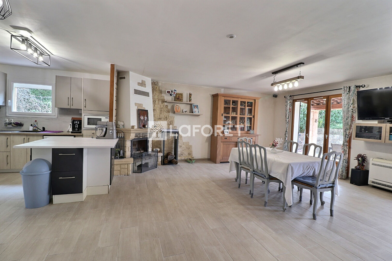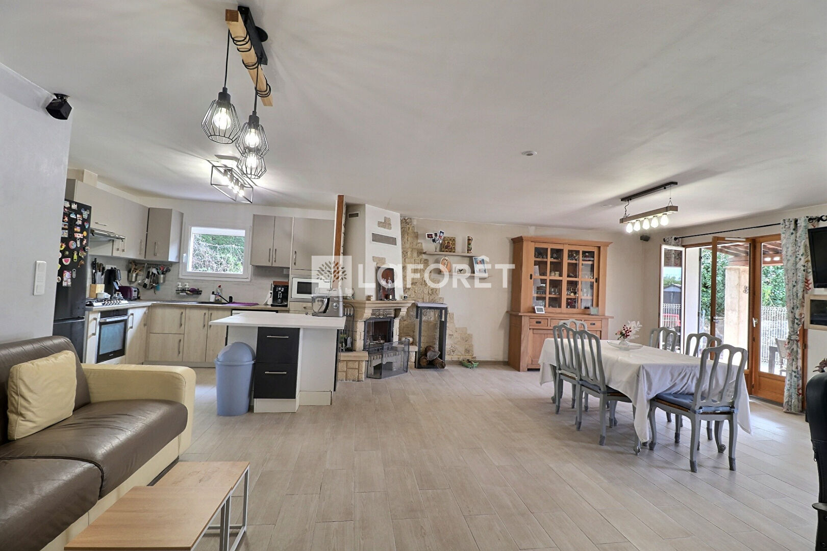 Un très bel espace de vie d'environ 50m² avec sa cuisine ouverte vous invite à de beaux moments au coin de la cheminée à insert.