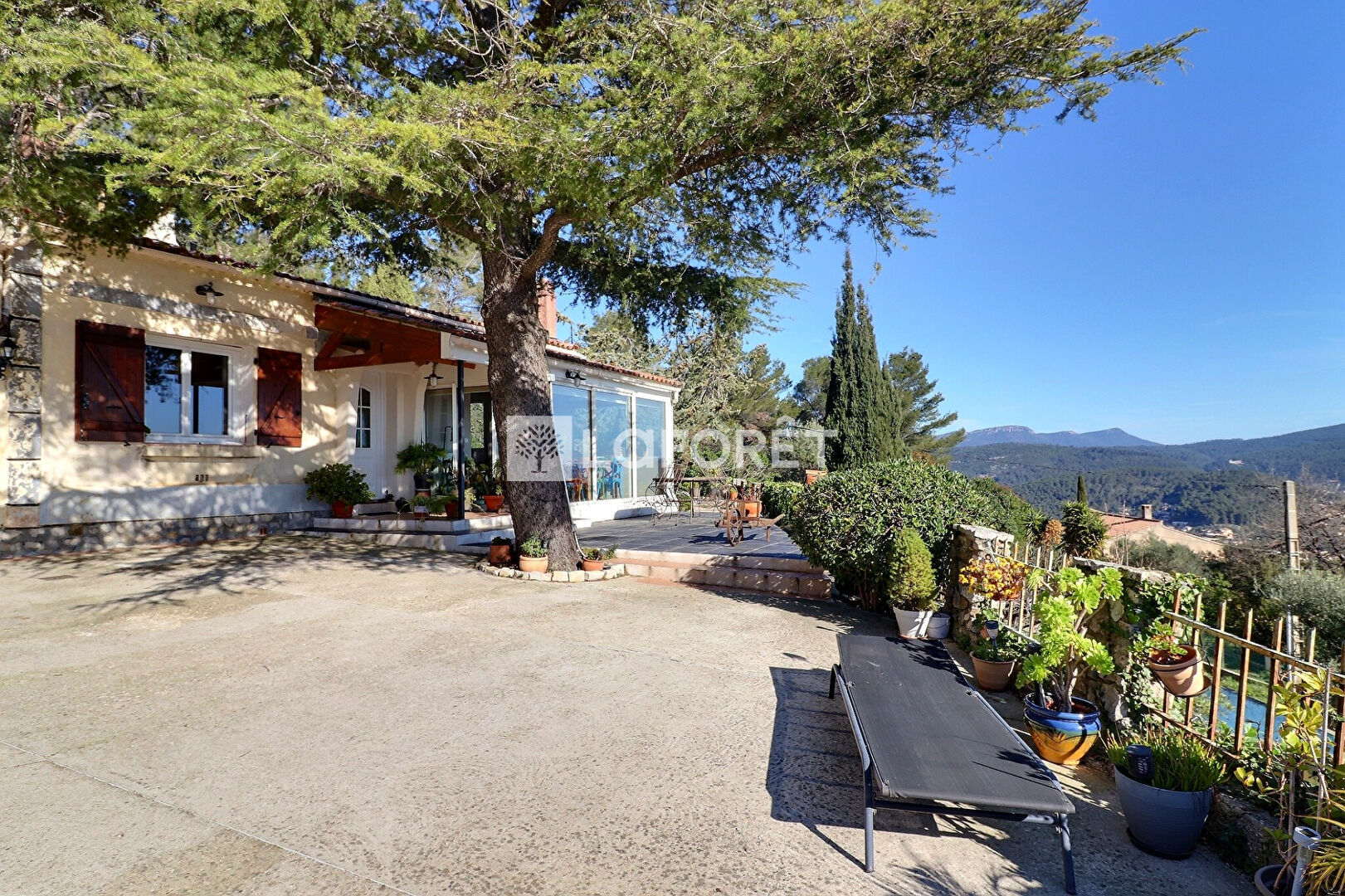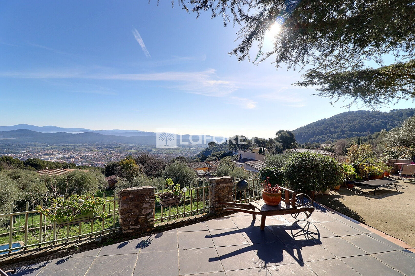 Dans un secteur résidentiel calme et prisé, cette maison ancienne de plain-pied s'offre à vous comme un belvédère sur la Vallée du Gapeau, Quatre pièces principales d'environ 100 m² , le séjour lumineux s'ouvre naturellement sur une véranda puis sur une large terrasse dominant les collines avec un aperçu Mer, un espace pensé pour recevoir, pour respirer, pour durer.