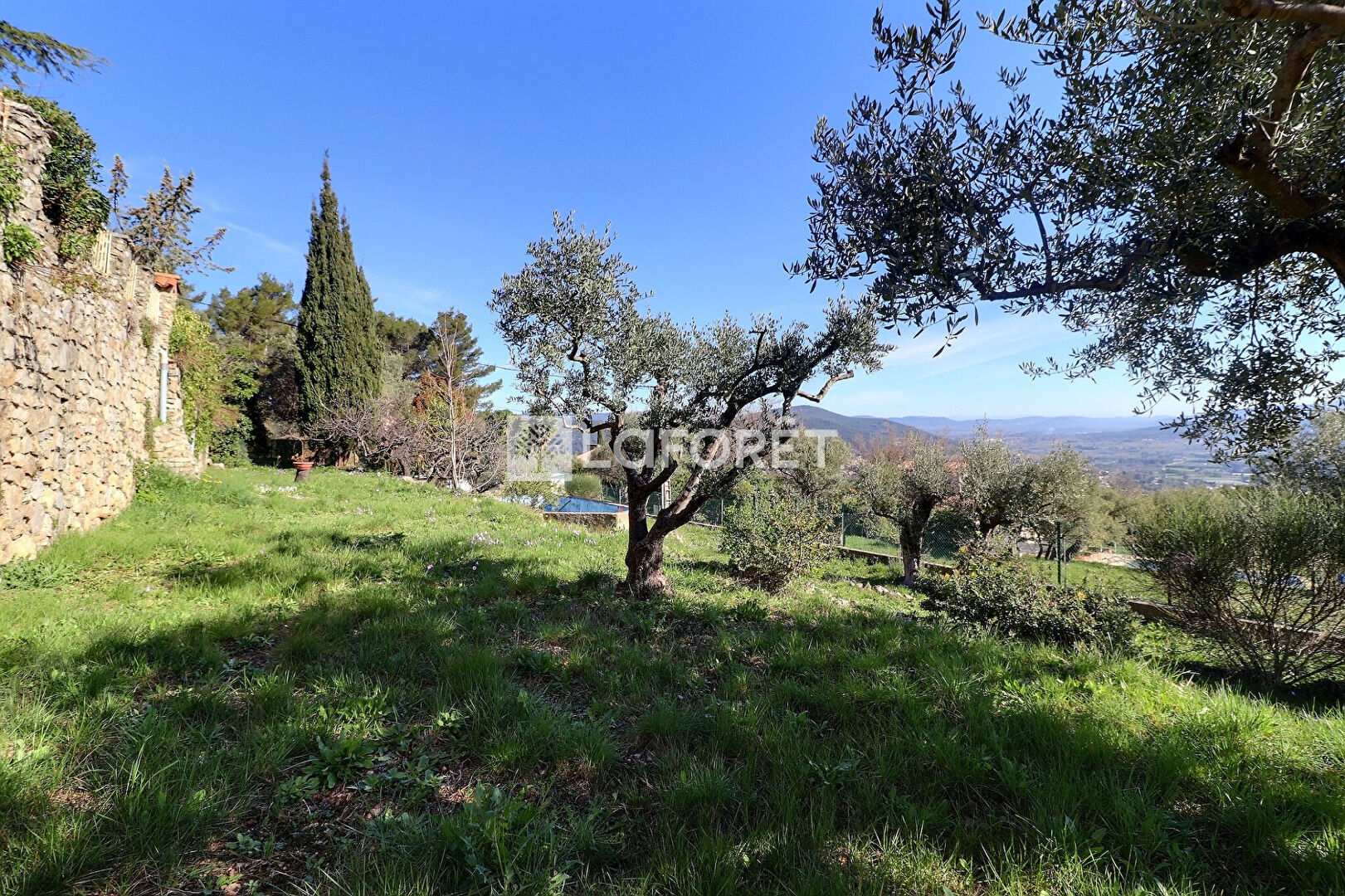 En contrebas, la terre vous raconte son histoire : 1.000 m² en restanques, bordés d'oliviers centenaires qui veillent ici depuis des générations, un bassin à rénover attends sa prochaine vie ,peut-être celle d'une piscine.