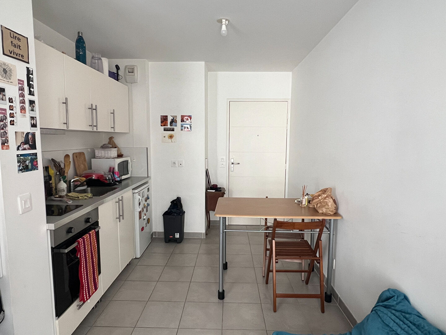 L'appartement, situé en étage, se compose d'une entrée desservant une cuisine indépendante avec un espace repas lumineux.