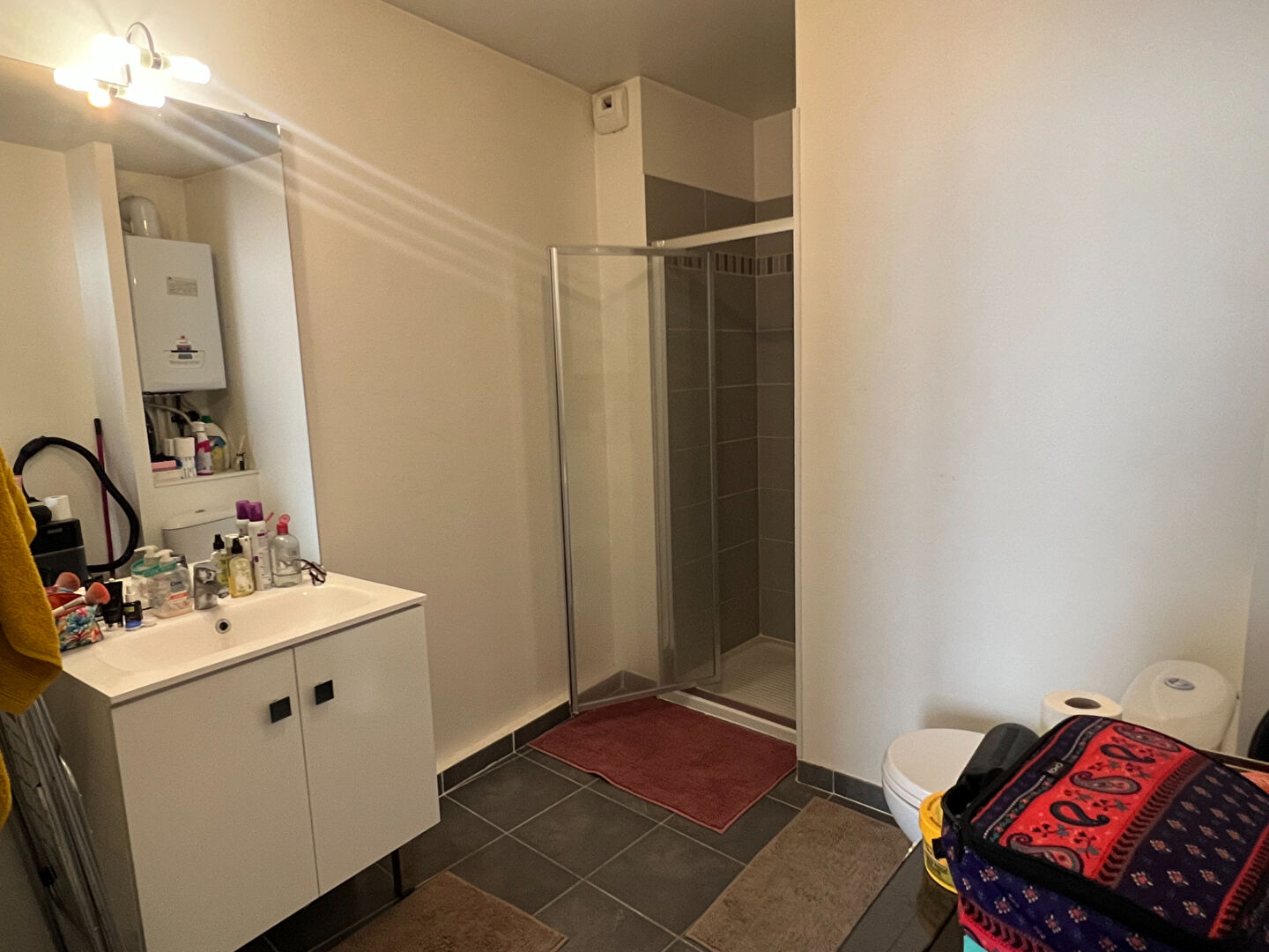 L'espace nuit, intelligemment séparé, permet de préserver une vraie intimité. Il s'ouvre sur une grande salle d'eau contemporaine avec toilettes, parfaitement entretenue.