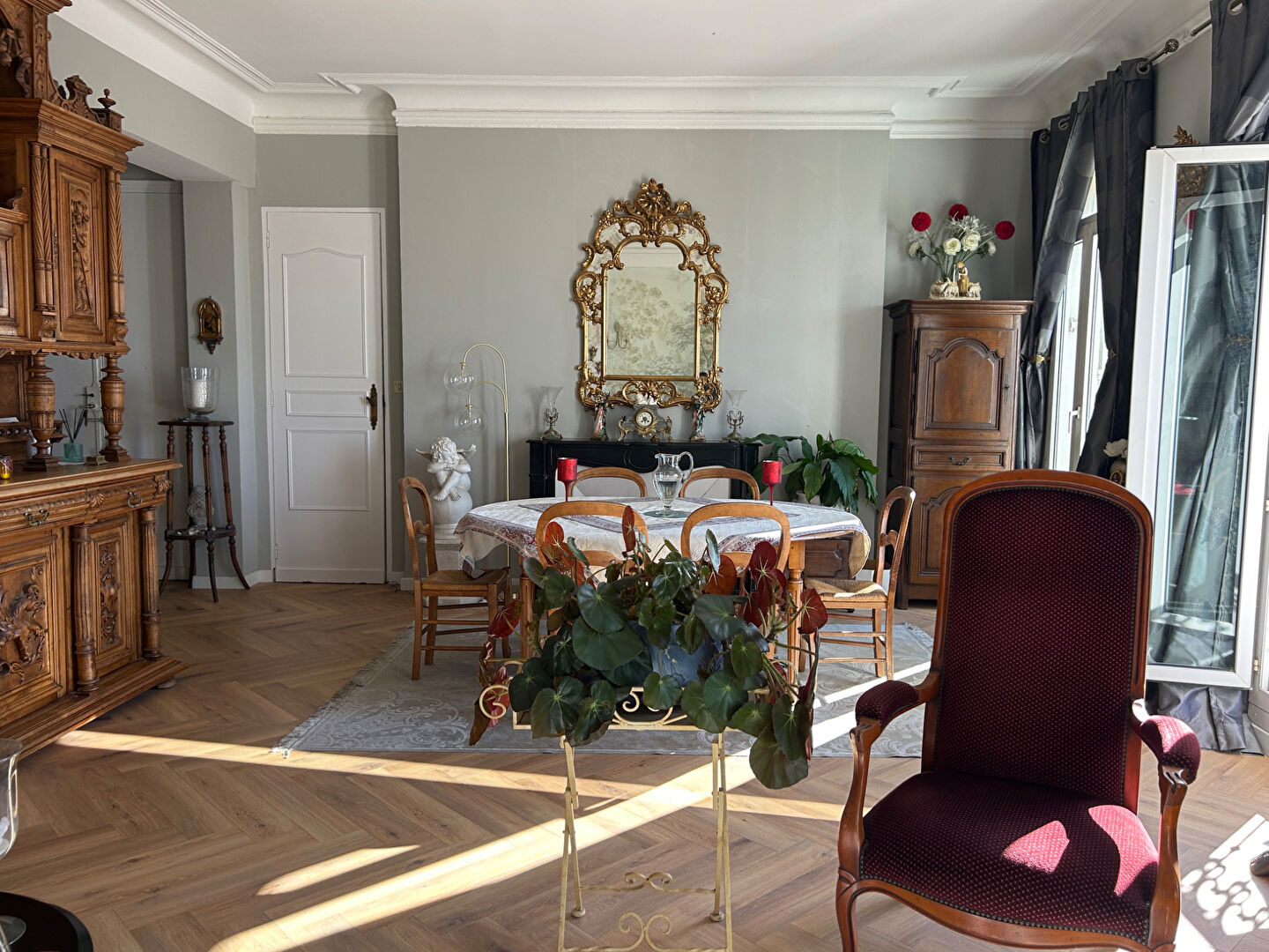 Dès l'entrée, vous serez charmé par ses volumes généreux, sa belle hauteur sous plafond et sa luminosité exceptionnelle. Le séjour double de 35 m², exposé plein sud, dispose de trois grandes ouvertures s'ouvrant sur un balcon filant, offrant une vue dégagée et une atmosphère chaleureuse agrémentée d'une cheminée.