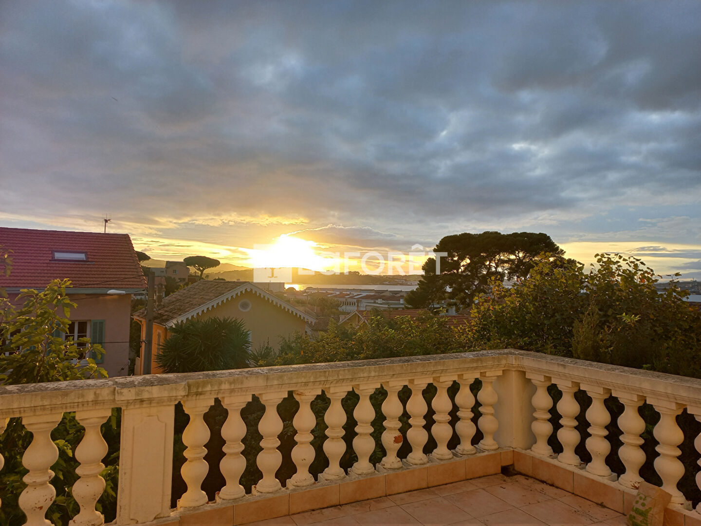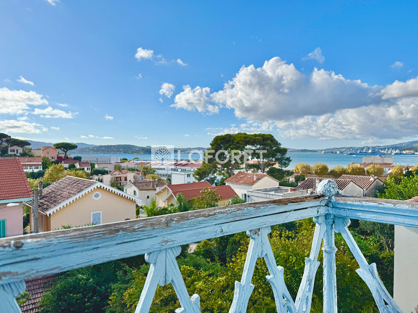 À l'étage, trois chambres et une salle de bain s'ouvrent sur une terrasse de 25 m², véritable belvédère sur toute la rade de Toulon, offrant des couchers de soleil spectaculaires.