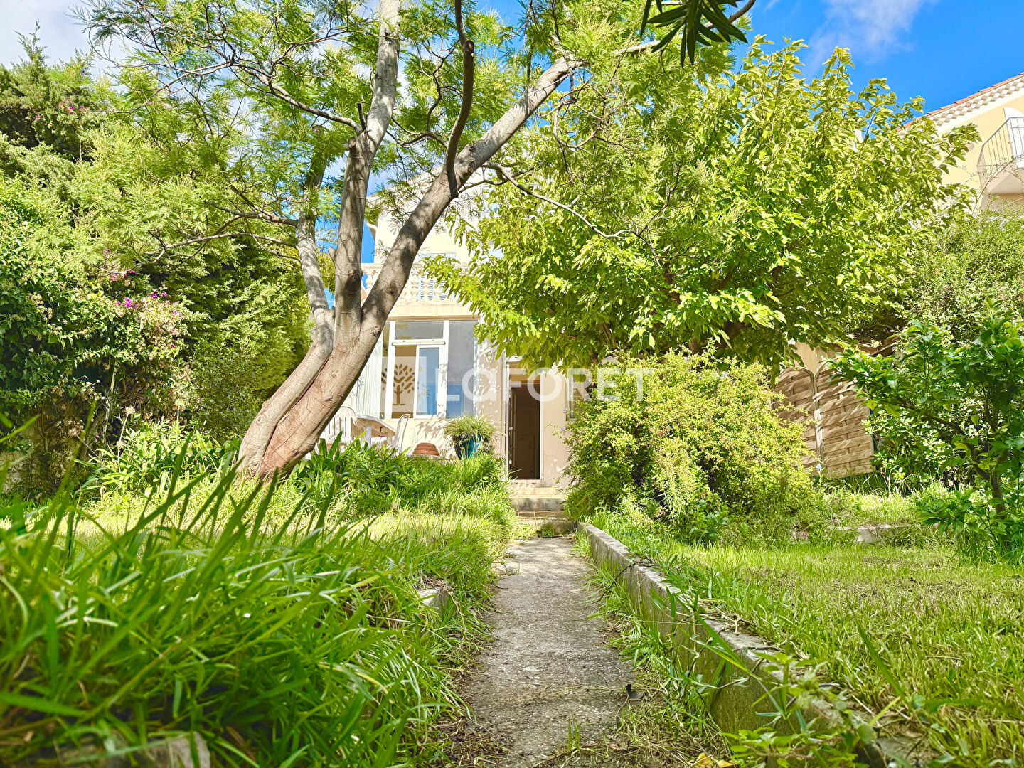 Édifiée sur un terrain de 250 m² exposé plein sud, elle s'ouvre par un portillon piéton menant à un agréable jardin. Au fond de celui-ci, un cabanon cadastré complète cet espace extérieur déjà généreux, idéal pour profiter de la douceur de vivre méditerranéenne.