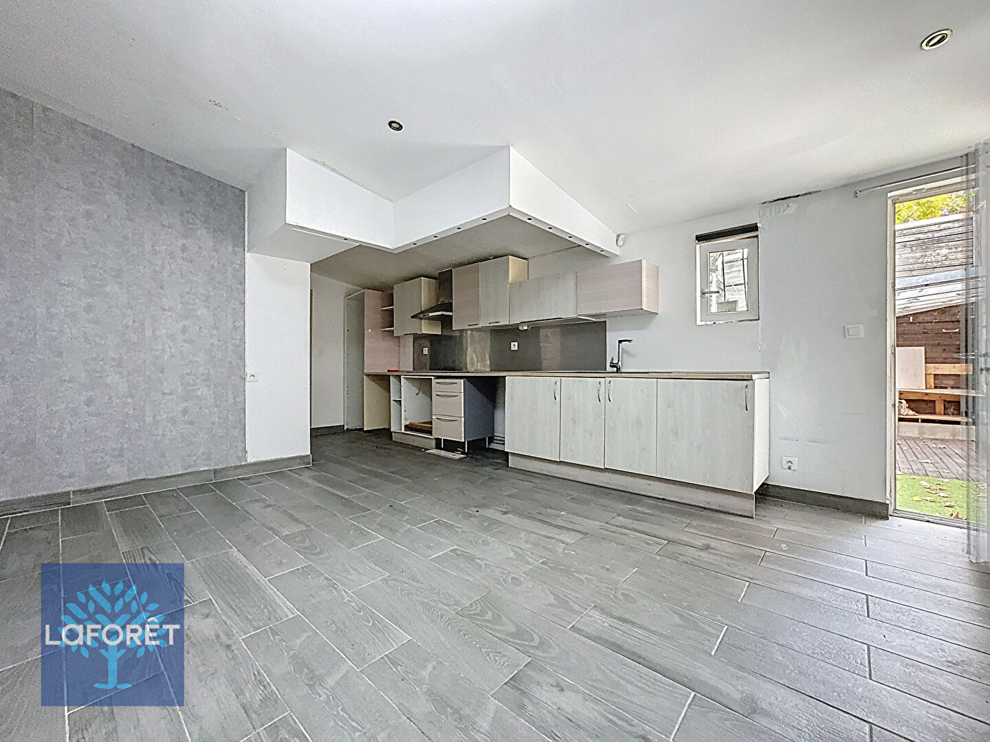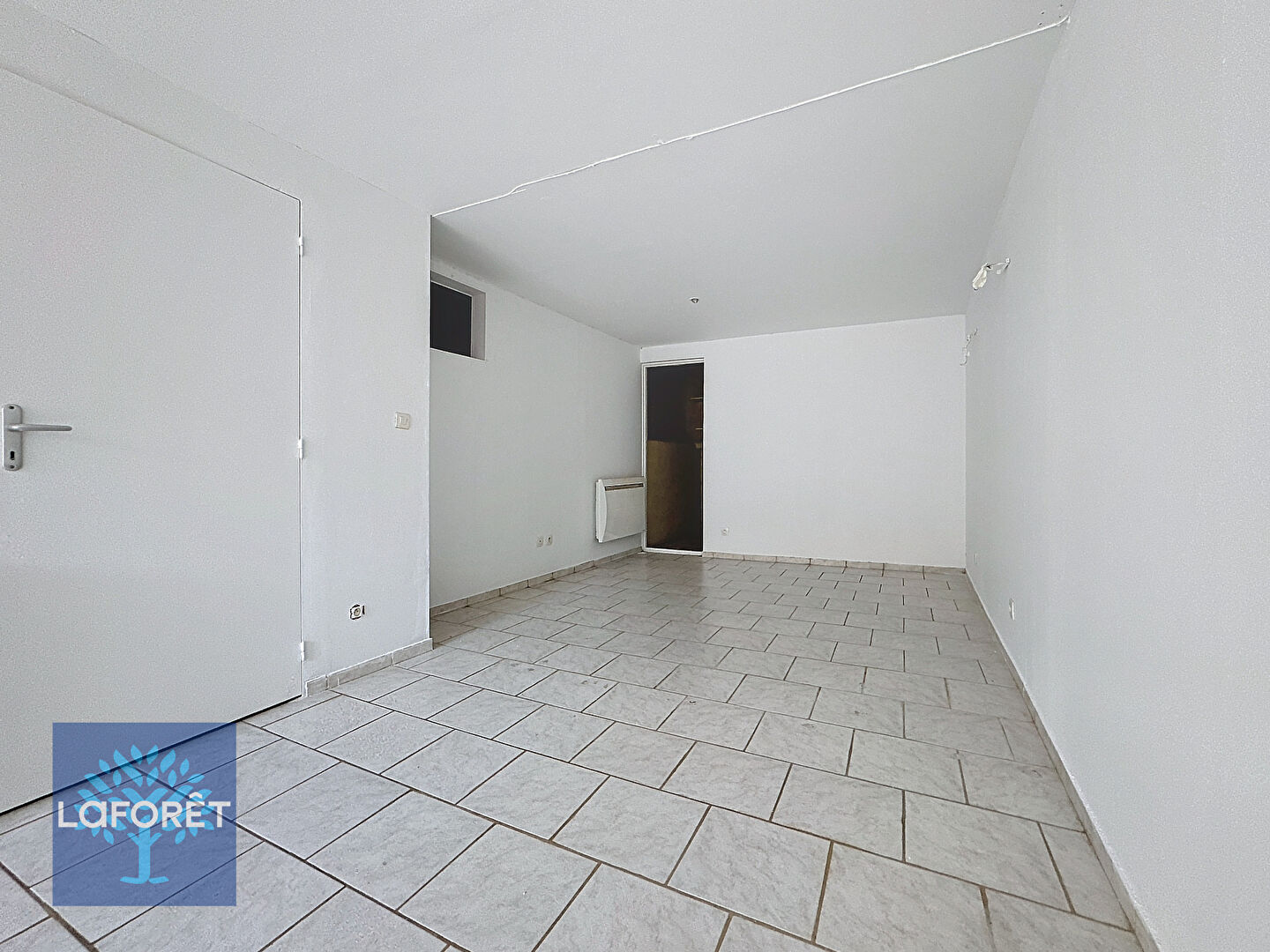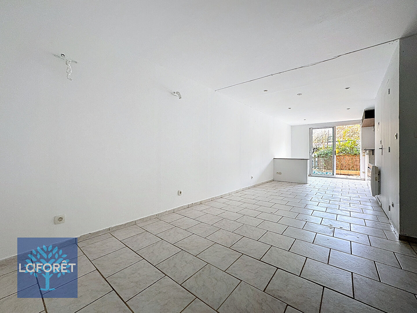 Un studio de 33.3 m² comprenant une grande pièce de vie avec un coin cuisine, une salle d'eau avec WC, un débarras et un jardin privatif de 96 m² (possibilité de faire un coin nuit).