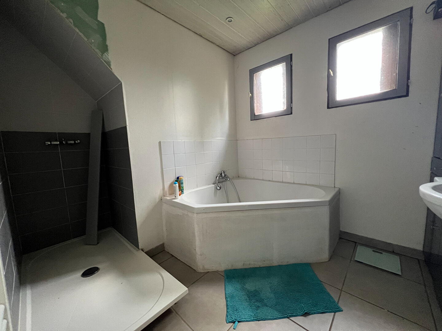 À l'étage : un grand palier dessert quatre bureaux de 5,19 à 6,7 m² habitables, pouvant être réunis afin de former deux belles chambres, ainsi qu'une salle d'eau.