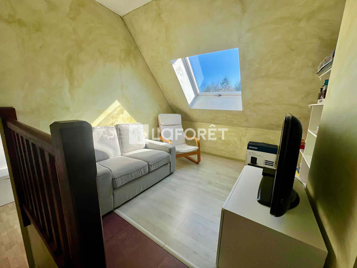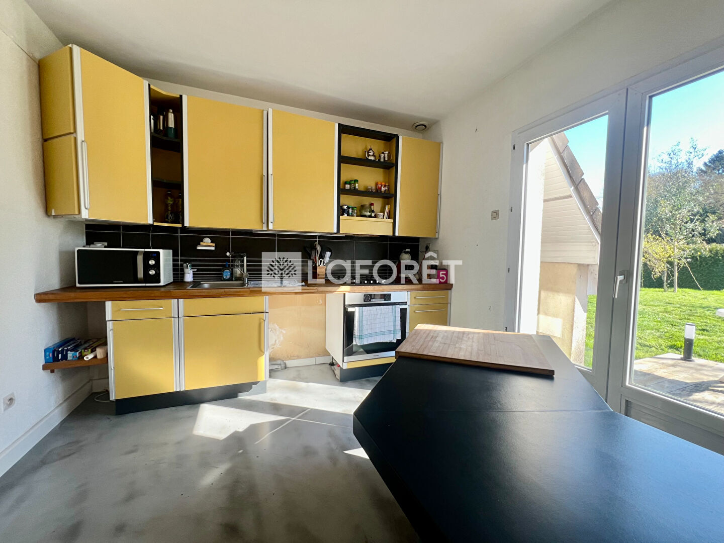 Ce bien comprend une entrée desservant de beaux espaces de vie répartis en trois grandes pièces : un salon, une salle à manger et une bibliothèque, l'ensemble fait environ 45 m², ainsi qu'une cuisine aménagée et équipée et une chambre. Toutes les pièces du rez-de-chaussée bénéficient d'un accès direct au jardin et à la terrasse, permettant de profiter pleinement de l'extérieur et des beaux jours.