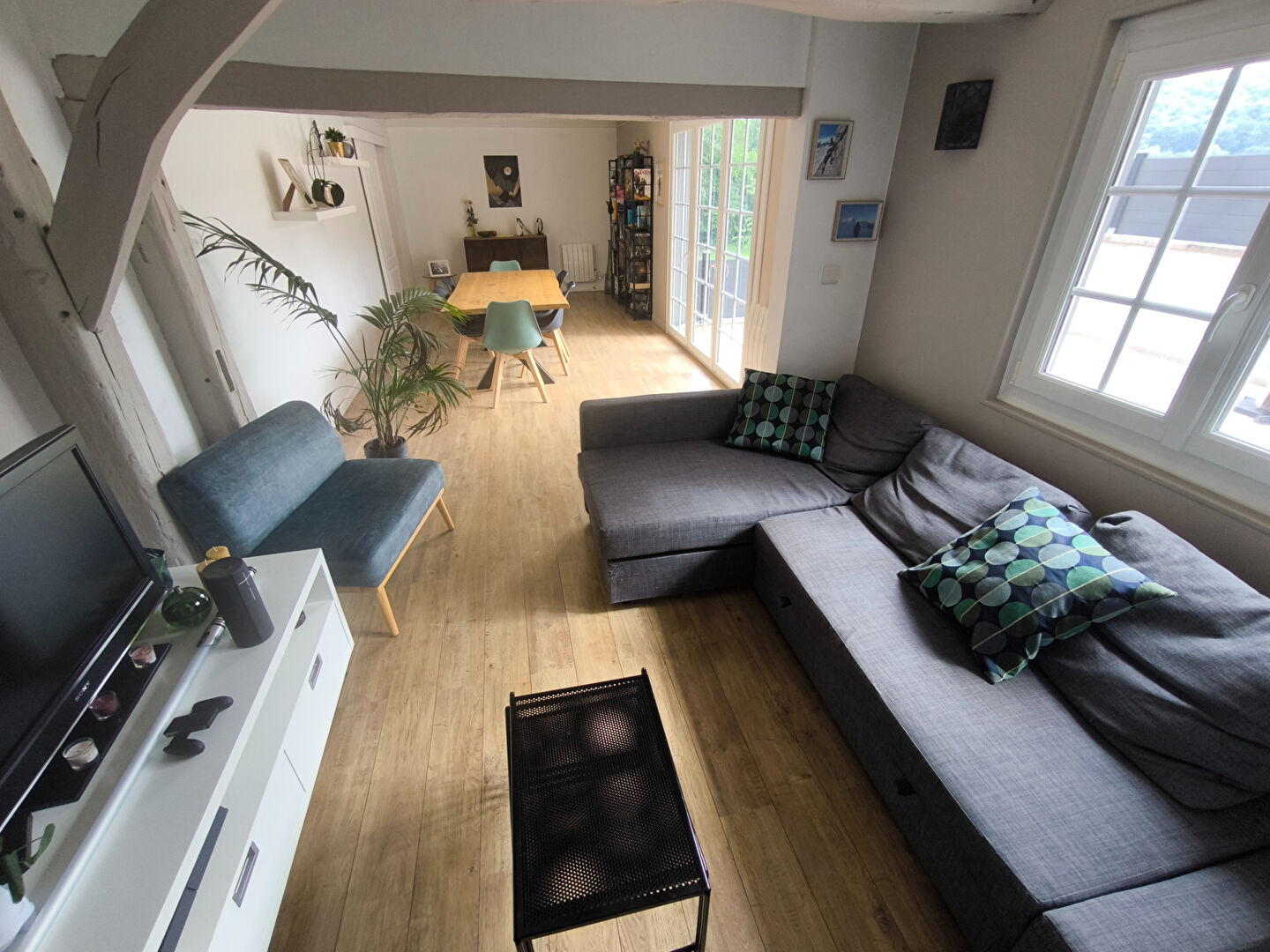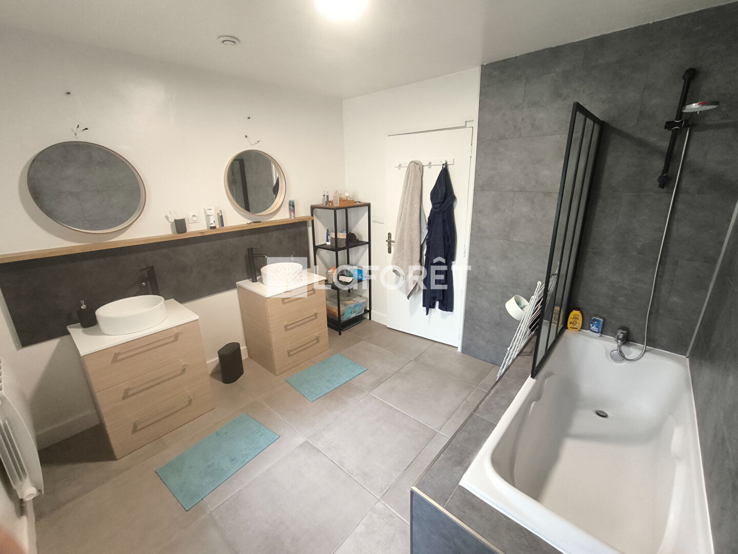 Elle offre au rez-de-chaussée : un couloir desservant une cuisine aménagée, un bureau, un séjour très lumineux de plus de 30m², une première chambre avec un placard, une deuxième chambre, une salle de bain avec doubles vasques, un wc séparé.