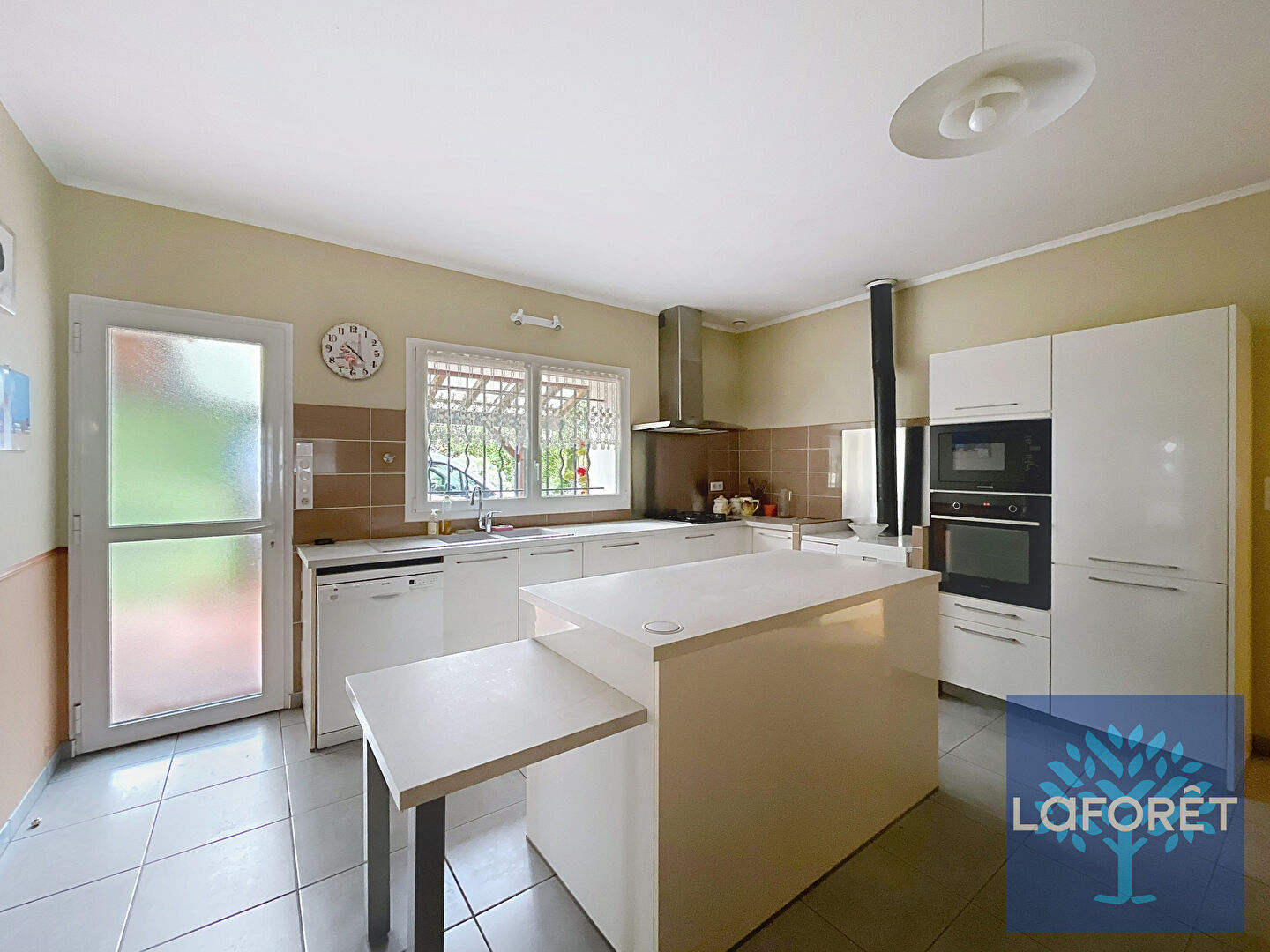 Elle se compose de plain pieds, d'une cuisine moderne entièrement aménagée et équipée, un cellier, une pièce à vivre d'environ 40m² avec cheminée, trois chambres, un bureau, une salle de bains et WC séparés.