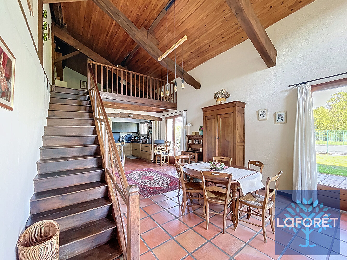 À seulement 8 minutes de Dax, dans un environnement calme et sans vis-à-vis, découvrez cette charmante maison d'environ 158 m² alliant authenticité et caractère avec ses poutres apparentes et ses murs en pierre, implantée sur un magnifique terrain d'environ 2500 m² avec piscine. Elle se compose de 3 chambres dont deux en rez-de-chaussée, d'une salle de bain, d'une cuisine ouverte sur une belle pièce de vie d'environ 30 m², d'un salon d'entrée, ainsi que d'un cellier, d'un dressing et d'une buanderie. À l'étage, une mezzanine faisant office de troisième chambre apporte un espace supplémentaire plein de charme, tandis qu'un grenier de 102 m² reste à aménager selon vos envies. À l'extérieur, vous bénéficierez également d'un atelier, d'un abri et d'une grange de 61 m² pouvant servir de garage ou être réhabilitée, offrant ainsi de nombreuses possibilités pour concrétiser vos projets.