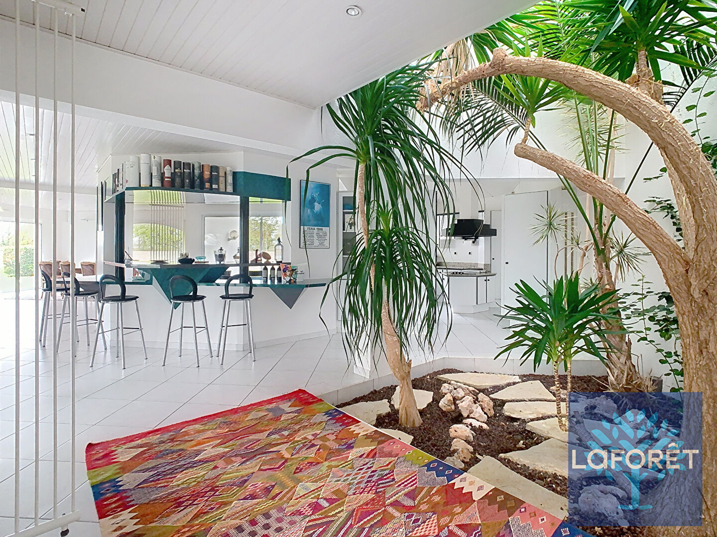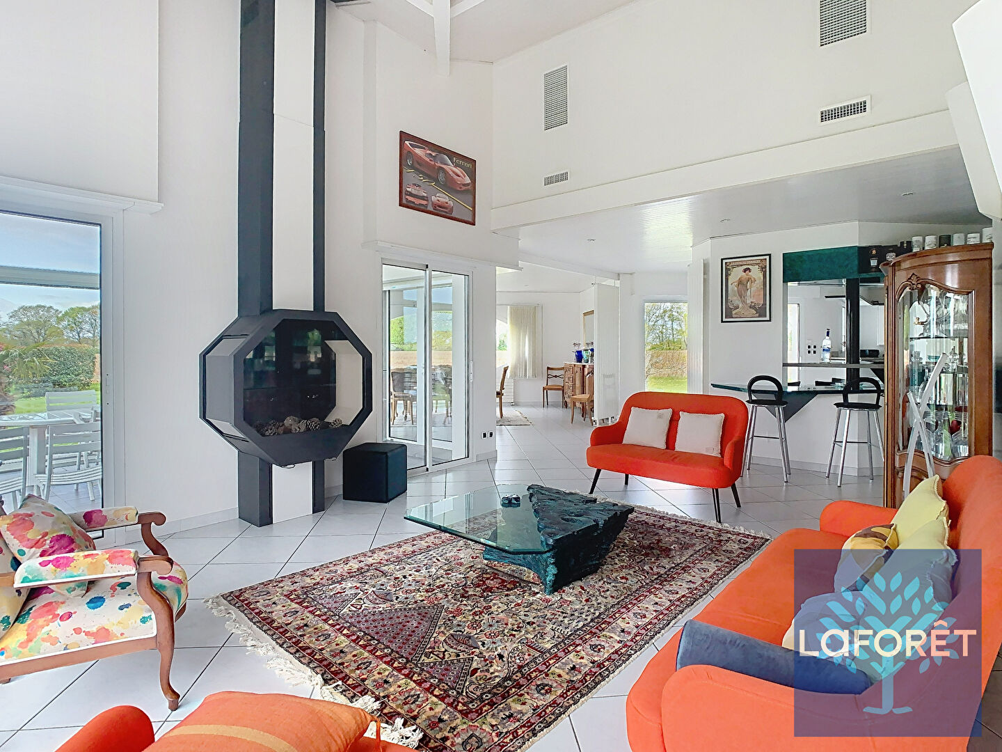 Elle offre une vaste pièce de vie, une véranda avec barbecue, plusieurs terrasses, ainsi que trois chambres confortables et un garage.