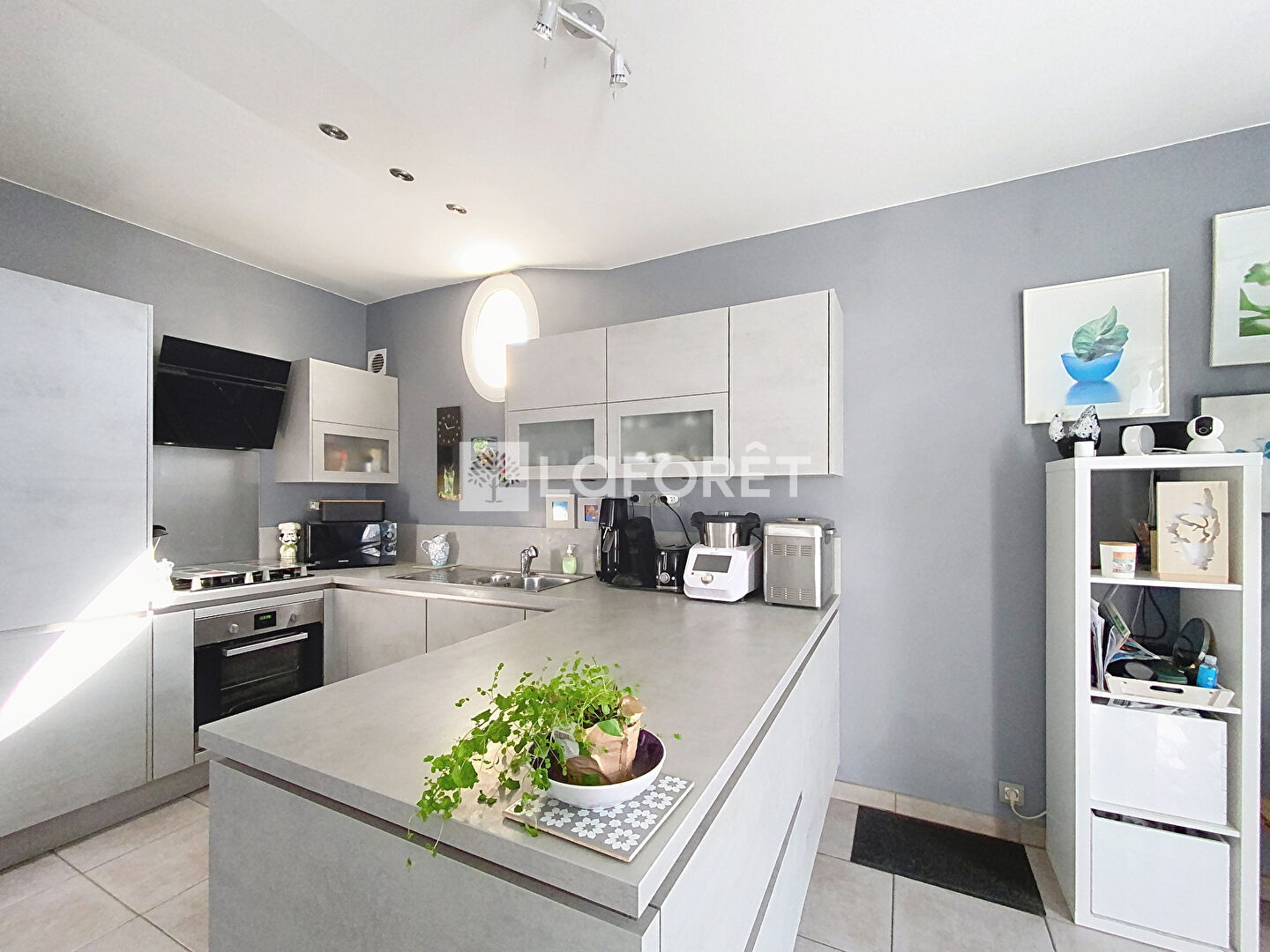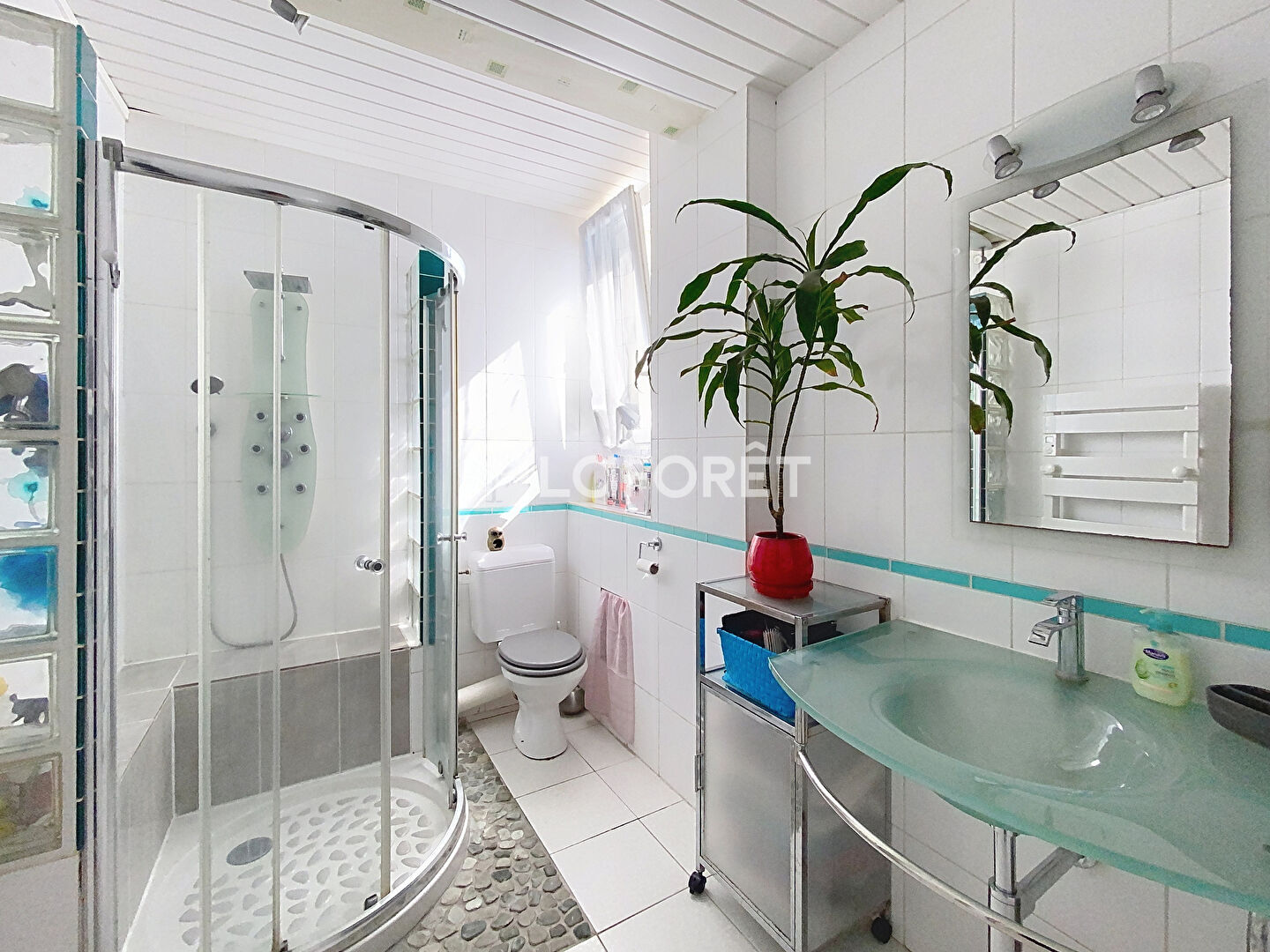 Elle offre un bel espace de vie lumineux de 28 m2 composé d'une partie dinatoire avec cuisine entièrement aménagée et équipée et d'un salon de 23 m2. WC.