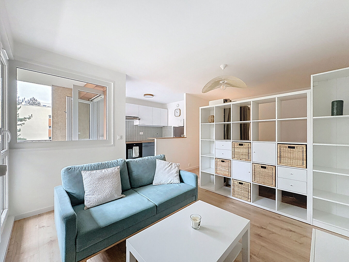 Il se compose d'une entrée avec cellier, d'une pièce de vie lumineuse donnant accès à un grand balcon, d'une cuisine ouverte sur le séjour, ainsi que d'une salle de bains avec WC.